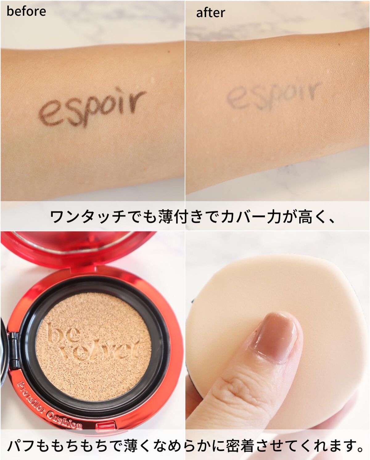 ピンクでもベージュでもない、日本限定色が登場!espoirビーベルベットカバークッション21pピーチアイボリー美容系アワードを総なめした、エスポアの人気クッションファンデから日本人の肌に合わせた限定カラーが登場しているよー!21Pピーチアイボ...