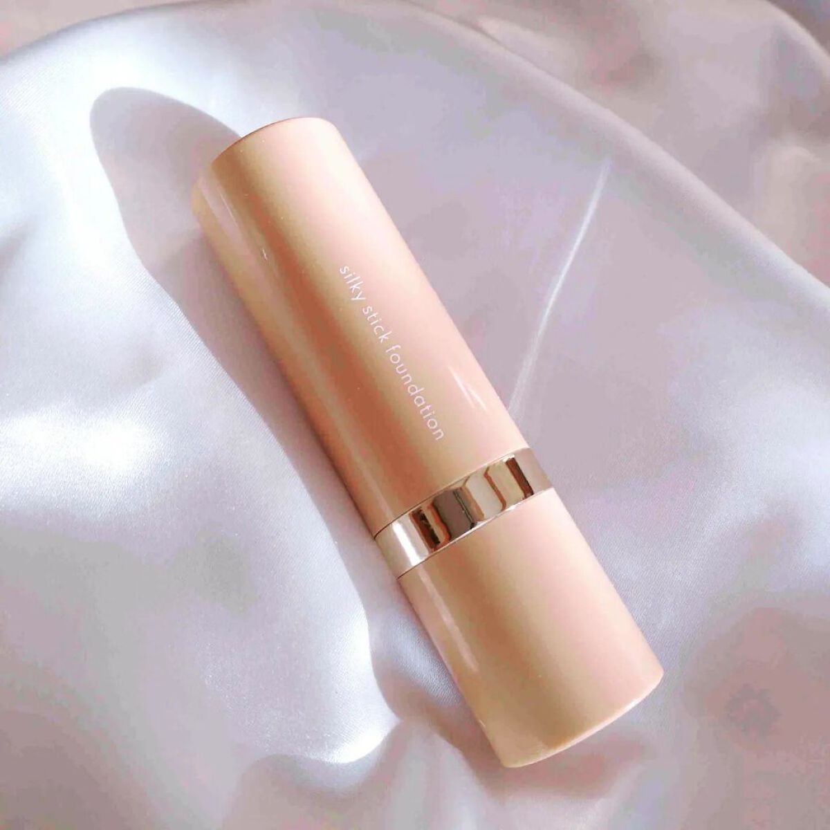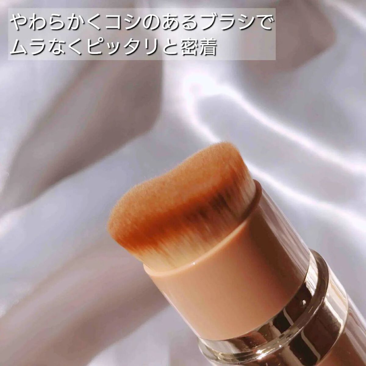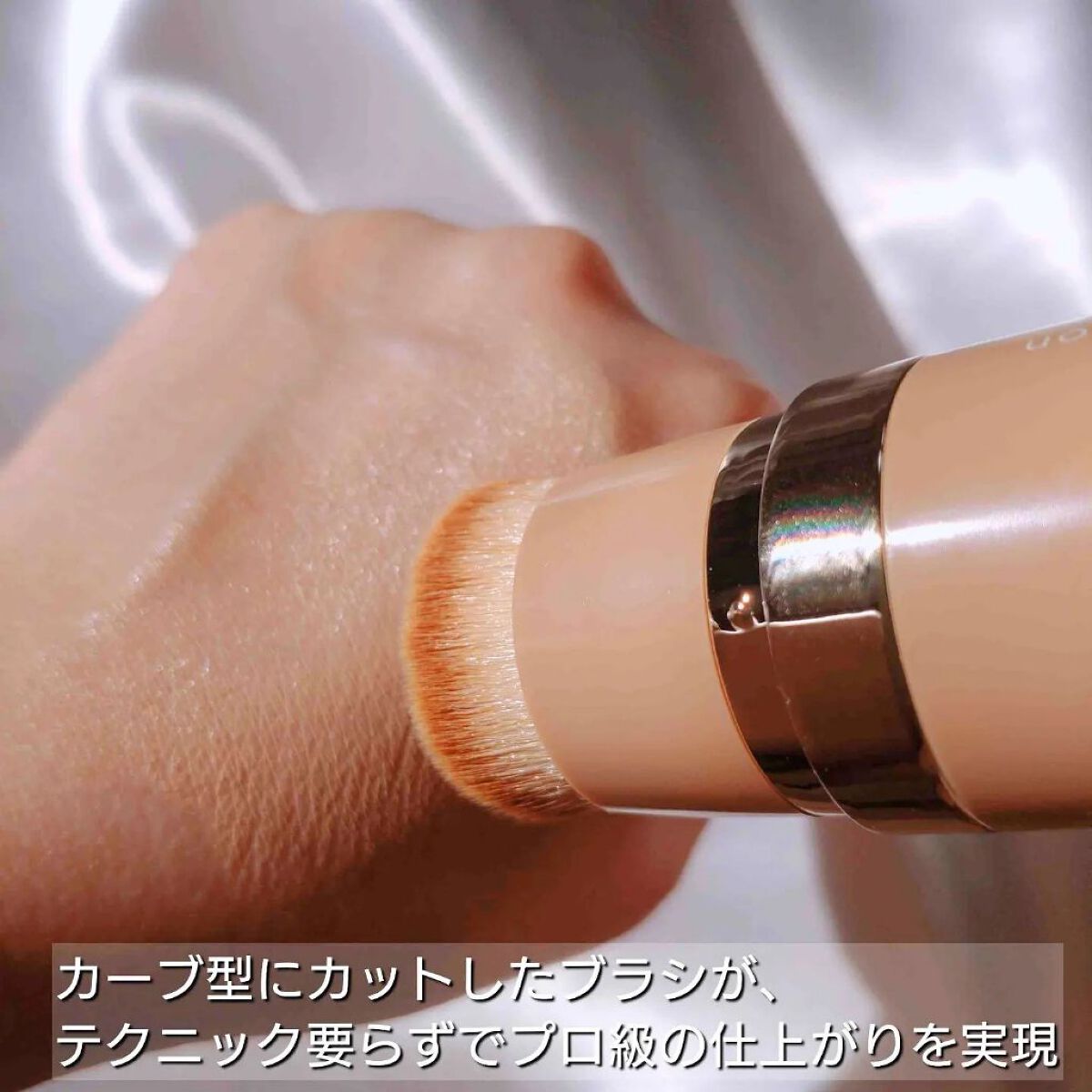これ一本でベースメイクが完成するスティックファンデーション。ダブルエンドでファンデとブラシが一体になってるの。 ブラシは毛がびっしり!!その量なんと7万本しかもブラシの形がかわっていて、顔の骨格にあわせてカーブ型にカットされてるの。 ファンデはピタッと密着してくるし、ツヤがあるように見えるの✨保湿成分のルリジサエキスなども入っていて嬉しい♡♡♡