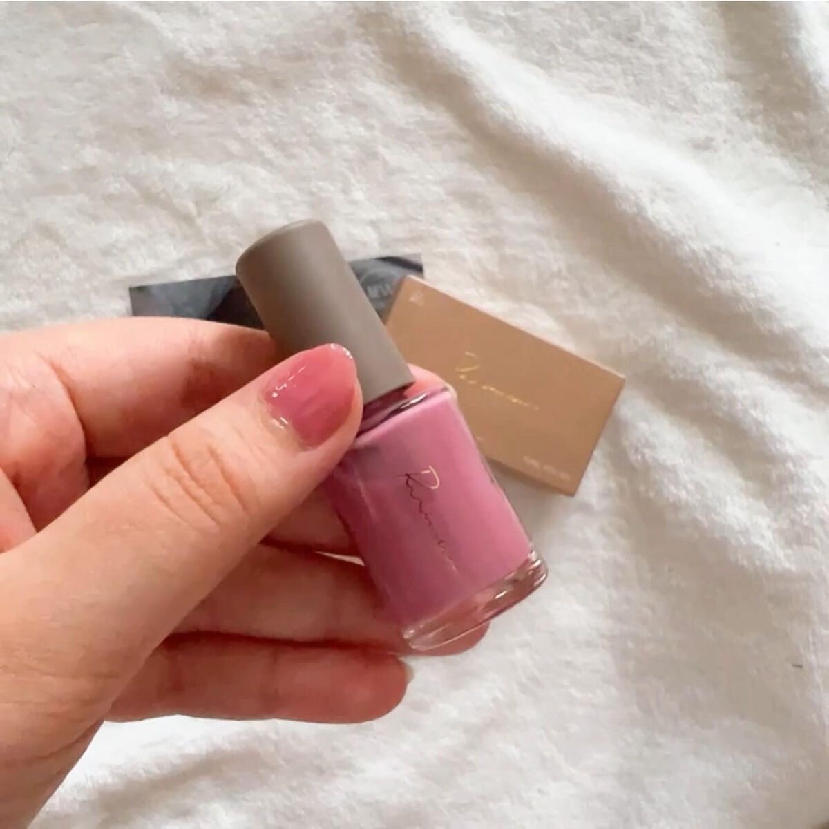 透け感がかなりあるので柔らかいホワイトネイルになります🥰 重ねてつけることで発色も増して、私は三度塗りの透け感と発色がちょうど良くて好み💖 驚いたのが速乾具合!! 今まで使ってきたネイルポリッシュの中で1番乾くの早いって思いました!! サイズ感も小さめでコスパもいいので、他のカラーも買います😍