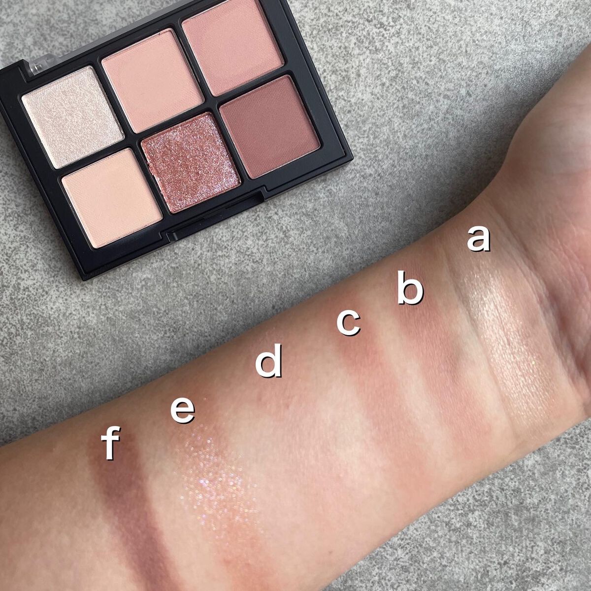 01パール感が可愛い❤️発色は普通。 03は粉質柔らかく発色弱めで粉飛び・ラメ落ちあり。 色味はピーチを期待してたけどベースカラーは結構白みが強いピーチ?ピンク?でミルキー感が強くて個人的にはそんなにイエベ向き!って感じはしなかったかも。 アイシャドウベース併用してても朝したメイクが昼頃には薄くなってたので、どちらもそんなに持続力はないかも?