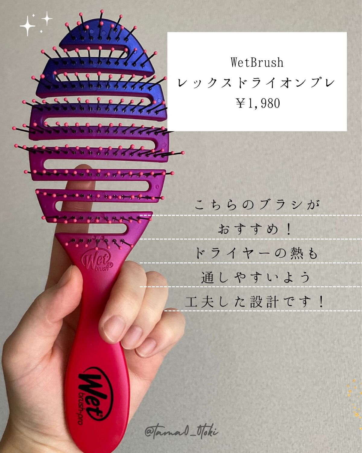 | ヘアブラシランキング第80位 | ドライヤー時間が本当に短くなりました! それに、さらさらのからまらない髪になりました! | 詳細を見る |