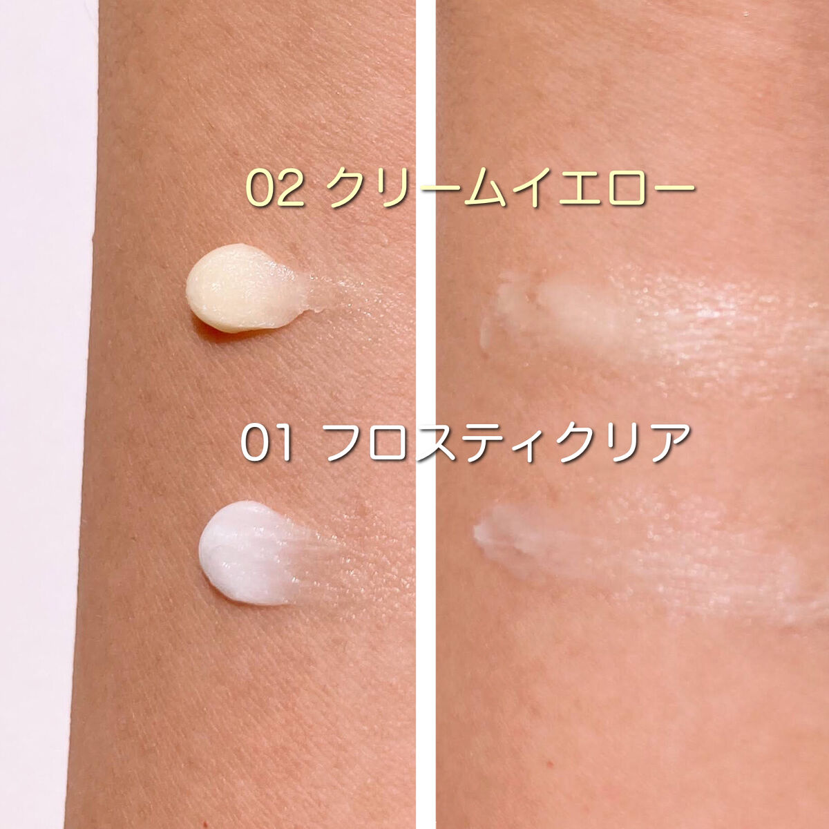 - 2024.6月下旬~ 01の全成分が順次リニューアル 尚、これにかかる商品の返品・交換は承っておりません。 崩したくない!アイメイクをしっかりキープ!! アイシャドウ・アイブロウ・アイライナー、マルチに使えるアイメイク下地 アイメイクを重ねた瞬間、発色UP! しっかりと密着してにじみやヨレを防ぎ、つけたての仕上がりを長時間キープ! ラメ・パールなし。 01:フロスティクリア 塗ると透明になり、どんなアイカラーにも! 02:クリームイエロー お肌に嬉しい5種の整肌成分配合のイエロータイプ ナイアシンアミド・パルミチン酸レチノール・3種のアミノ酸・ツボクサ葉エキス・3種のセラミド配合