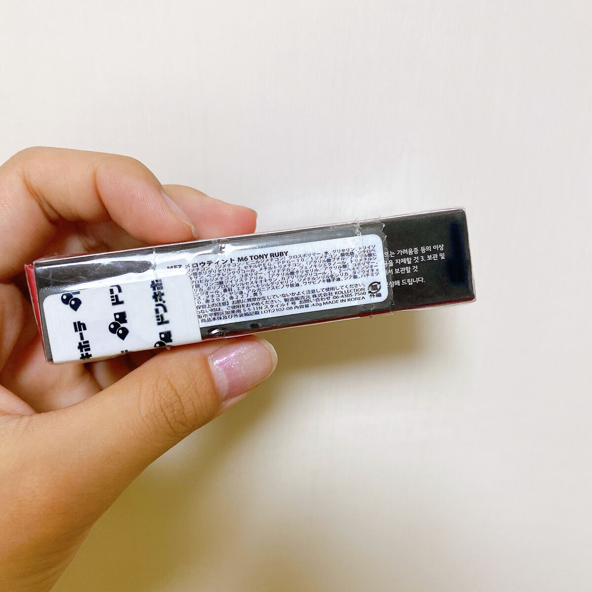 - <M1 マホガニー> ジメチコン、(ジメチコン/ビニルジメチコン)クロスポリマー、水、グリセリン、トリイソステアリン酸ポリグリセリル-2、セチルPEG/PPG-10/1ジメチコン、シクロペンタシロキサン、ペンチレングリコール、メチルトリメチコン、リンゴ酸ジイソステアリル、(アクリル酸ブチル/アクリル酸ヒドロキシプロピルジメチコン)コポリマー、イソドデカン、フェノキシエタノール、トリメチルシロキシケイ酸、(アクリル酸グリセリル/アクリル酸)コポリマー、マイカ、シリカ、ポリプロピルシルセスキオキサン、カプリリルグリコール、1,2-ヘキサンジオール、プロパンジオール、香料、エチルヘキシルグリセリン、水酸化Al、ジメチルシリル化シリカ、ダイウイキョウ果実エキス、メチコン、ヤシ油、アルガニアスピノサ核油、ワサビノキ種子油、シア脂、ハチミツエキス、BG、酸化チタン、酸化鉄、赤104(1)、赤202、黄5、青1 <M2 ジェインチリー> ジメチコン、(ジメチコン/ビニルジメチコン)クロスポリマー、水、グリセリン、トリイソステアリン酸ポリグリセリル-2、セチルPEG/PPG-10/1ジメチコン、シクロペンタシロキサン、ペンチレングリコール、リンゴ酸ジイソステアリル、メチルトリメチコン、(アクリル酸ブチル/アクリル酸ヒドロキシプロピルジメチコン)コポリマー、イソドデカン、フェノキシエタノール、トリメチルシロキシケイ酸、(アクリル酸グリセリル/アクリル酸)コポリマー、マイカ、シリカ、ポリプロピルシルセスキオキサン、カプリリルグリコール、1,2-ヘキサンジオール、香料、プロパンジオール、エチルヘキシルグリセリン、水酸化Al、ジメチルシリル化シリカ、ダイウイキョウ果実エキス、メチコン、ワサビノキ種子油、シア脂、ヤシ油、アルガニアスピノサ核油、ハチミツエキス、BG、酸化チタン、酸化鉄、赤104(1)、赤202、黄4、黄5、青1 <M3 スパイスブリック> ジメチコン、(ジメチコン/ビニルジメチコン)クロスポリマー、水、グリセリン、トリイソステアリン酸ポリグリセリル-2、セチルPEG/PPG-10/1ジメチコン、シクロペンタシロキサン、ペンチレングリコール、メチルトリメチコン、(アクリル酸ブチル/アクリル酸ヒドロキシプロピルジメチコン)コポリマー、イソドデカン、フェノキシエタノール、トリメチルシロキシケイ酸、(アクリル酸グリセリル/アクリル酸)コポリマー、マイカ、シリカ、ポリプロピルシルセスキオキサン、カプリリルグリコール、リンゴ酸ジイソステアリル、1,2-ヘキサンジオール、香料、プロパンジオール、水酸化Al、エチルヘキシルグリセリン、ジメチルシリル化シリカ、ダイウイキョウ果実エキス、メチコン、ワサビノキ種子油、シア脂、ヤシ油、アルガニアスピノサ核油、ハチミツエキス、BG、酸化チタン、酸化鉄、赤104(1)、黄4、黄5 <M4 ビアンローズ> ジメチコン、(ジメチコン/ビニルジメチコン)クロスポリマー、水、グリセリン、セチルPEG/PPG-10/1ジメチコン、トリイソステアリン酸ポリグリセリル-2、シクロペンタシロキサン、リンゴ酸ジイソステアリル、ペンチレングリコール、メチルトリメチコン、(アクリル酸ブチル/アクリル酸ヒドロキシプロピルジメチコン)コポリマー、イソドデカン、フェノキシエタノール、トリメチルシロキシケイ酸、(アクリル酸グリセリル/アクリル酸)コポリマー、マイカ、シリカ、ポリプロピルシルセスキオキサン、カプリリルグリコール、1,2-ヘキサンジオール、香料、プロパンジオール、エチルヘキシルグリセリン、水酸化Al、ジメチルシリル化シリカ、ダイウイキョウ果実エキス、メチコン、ワサビノキ種子油、シア脂、ヤシ油、アルガニアスピノサ核油、ハチミツエキス、BG、酸化チタン、酸化鉄、赤202、赤227、黄4、青1 <M5 ヘイキャンディー> ジメチコン、(ジメチコン/ビニルジメチコン)クロスポリマー、水、グリセリン、トリイソステアリン酸ポリグリセリル-2、セチルPEG/PPG-10/1ジメチコン、シクロペンタシロキサン、ペンチレングリコール、メチルトリメチコン、(アクリル酸ブチル/アクリル酸ヒドロキシプロピルジメチコン)コポリマー、イソドデカン、フェノキシエタノール、トリメチルシロキシケイ酸、リンゴ酸ジイソステアリル、(アクリル酸グリセリル/アクリル酸)コポリマー、マイカ、シリカ、ポリプロピルシルセスキオキサン、カプリリルグリコール、1,2-ヘキサンジオール、プロパンジオール、香料、エチルヘキシルグリセリン、ジメチルシリル化シリカ、ダイウイキョウ果実エキス、メチコン、アルガニアスピノサ核油、シア脂、ヤシ油、ワサビノキ種子油、ハチミツエキス、BG、酸化鉄、赤104(1)、赤202、黄5 <M6 トニールビー> ジメチコン、(ジメチコン/ビニルジメチコン)クロスポリマー、水、グリセリン、トリイソステアリン酸ポリグリセリル-2、セチルPEG/PPG-10/1ジメチコン、シクロペンタシロキサン、ペンチレングリコール、メチルトリメチコン、(アクリル酸ブチル/アクリル酸ヒドロキシプロピルジメチコン)コポリマー、