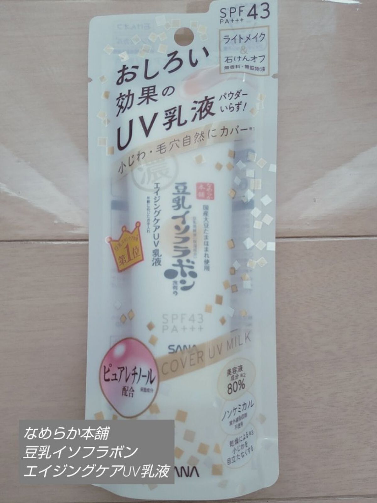 - ほうれい線・小じわのメイクよれが気になる方におすすめの日中用カバーUV 乳液です。リニューアルしたなめらか本舗エイジングケア*1ライン共通の、滋賀県産たまほまれ使用の豆乳発酵液*2とピュアレチノール*2を配合しています。リンクルリフレクト効果で、ほうれい線や小じわを目立たなくし、時間が経ってもメイクよれが気にならない処方を採用しました。お肌にうれしいノンケミカル(紫外線吸収剤不使用)処方で、洗顔後これ 1 つでスキンケアからベースメイクまで完成。 乾燥による小じわを目立たなくします(効能評価試験済み)。 SPF43・PA+++、石けんでオフできます。 *1年齢に応じたお手入れ *2保湿成分
