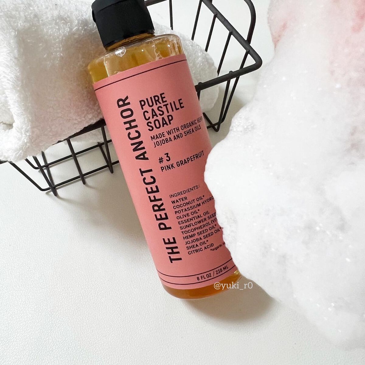 ザパーフェクトアンカー#3ピンクグレープフルーツ🩷236ml1375円100%天然•無添加でオーガニックの米国製カスチールソープ!✨うるおい成分(ヘンプ油•ホホバ油•シア脂油)泡立て始めるとグレープフルーツの爽やかで水々しい香りが広がって癒さ...