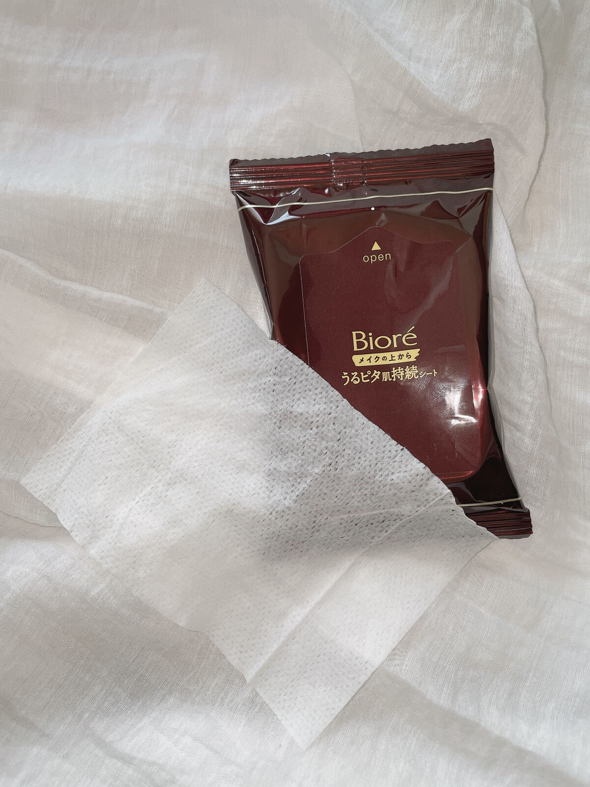 ビオレ様より商品提供していだたきました。Bioreメイクの上からうるピタ肌持続シート10枚入試供品試供品なので10枚入ですがコスパ良さげ◎《特徴》ファンデの粉浮き・しわヨレ防ぐ朝のメイクを密着ロック*¹!*¹うるピタ肌続く:シートによるメイク...
