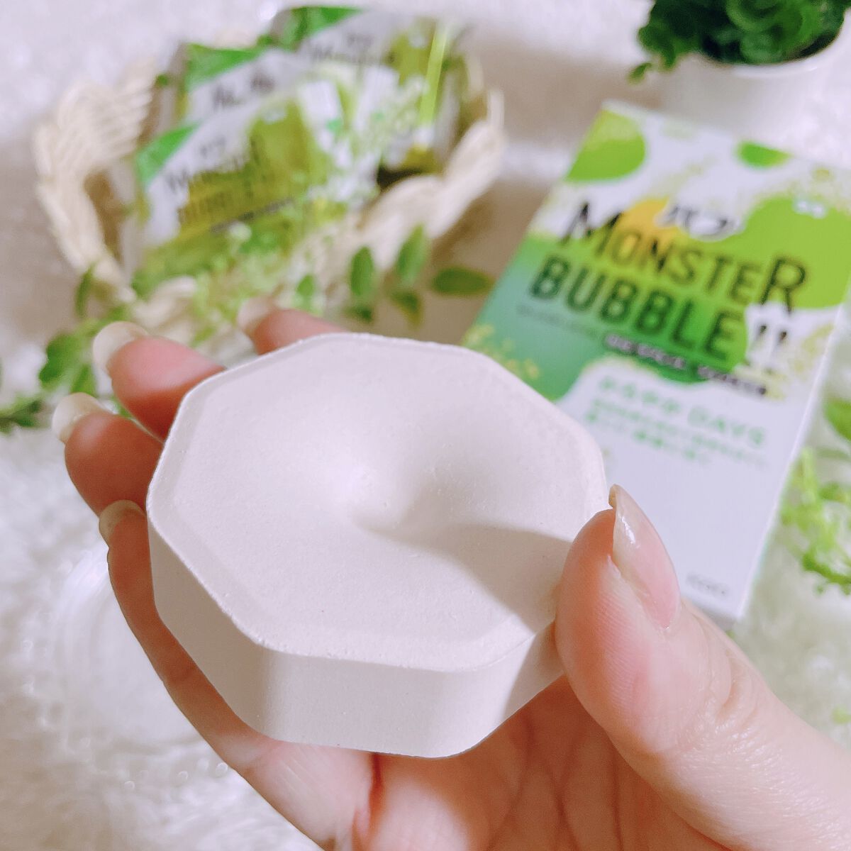 温浴効果を高めて筋肉をほぐし 肩こり・腰痛に効く かろやかDAYS 気分かろやかシトラスグリーンの香り。 シトラスグリーンの爽やかな香りもとても良かったです。全体的な使用感から、「かろやかDAYS」というネーミングは本当にこの商品にピッタリだなと思いました💗 990円で6錠入りなので、同じ値段で4個入りのモンスターバブルMEGA級と比較すると少しお安め。