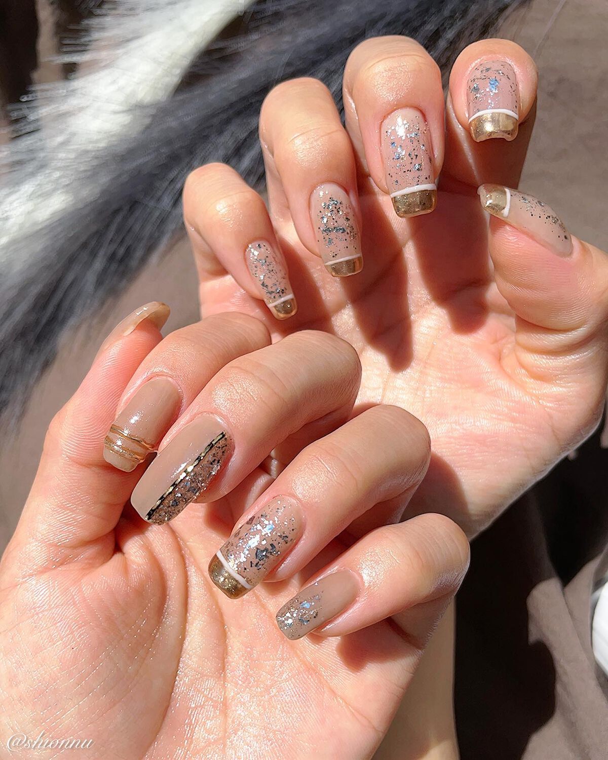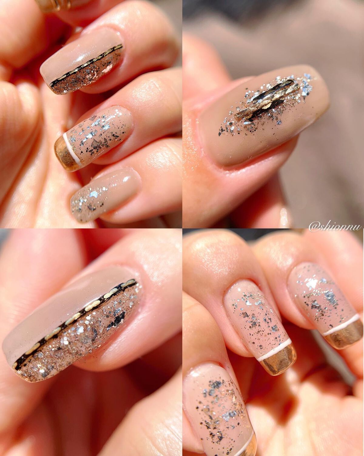 作ったサンプルを気に入って下さりミラーグラデーションとミラーのニュアンス?を😇先端を囲むデザインとアシメ♡ミラー可愛いぃ🪞✨📝パーツ@rusele__MirrorPowder-champangnegold📝ジェル@nailparfaitgel...