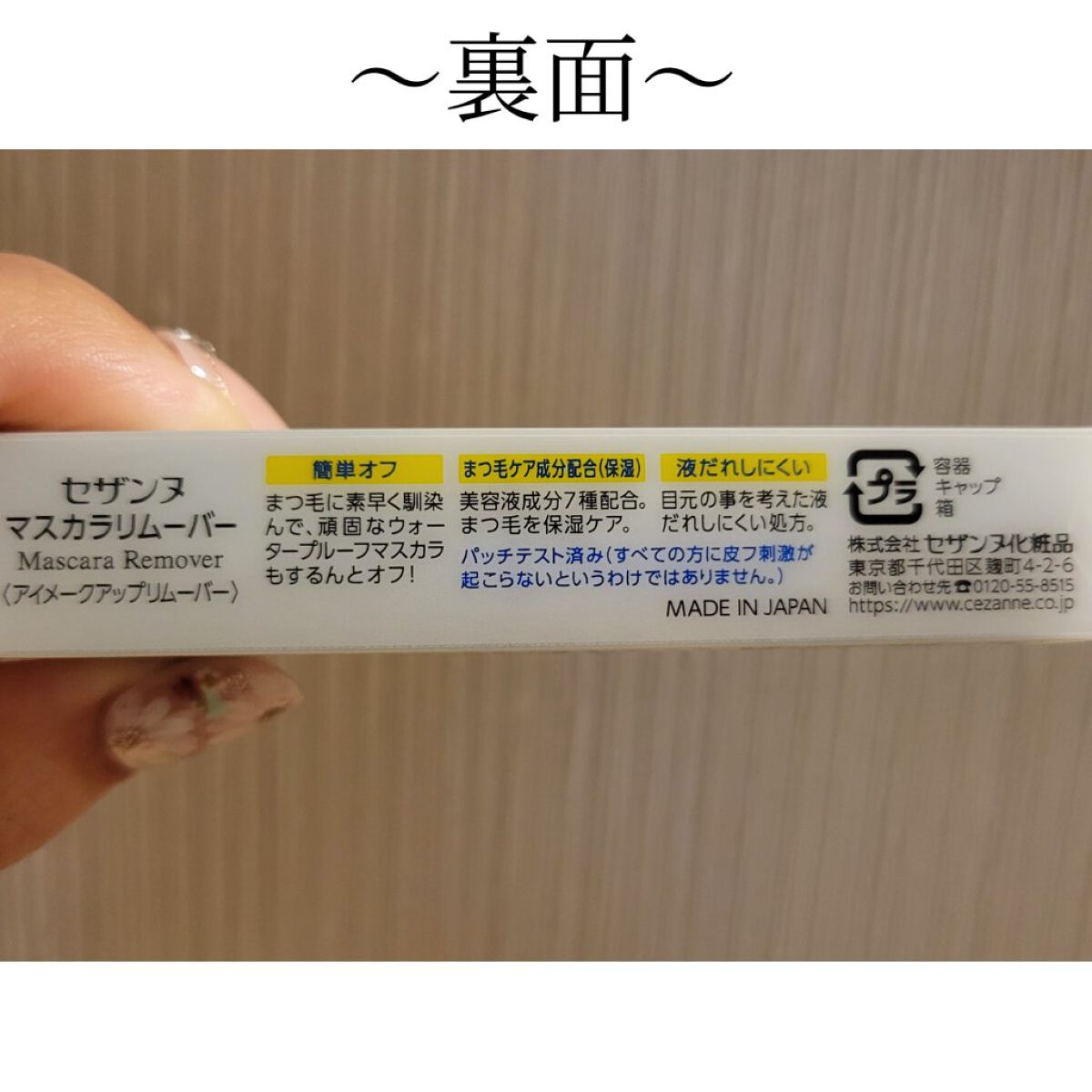- まつ毛に素早く馴染んで、頑固なウォータープルーフマスカラもするんと落とせます。 セザンヌのウォータープルーフマスカラとフィルムタイプ(お湯オフタイプ)のマスカラ全てに使用できます。 目元のことを考えた液だれしにくい処方。 美容液成分7種(ユズ果実エキス、パンテノール、ビオチノイルトリペプチド-1、ウメ果実エキス、ラウロイルグルタミン酸ジ(フィトステリル/オクチルドデシル)、アカヤジオウ根エキス、トウキンセンカ花エキス)配合。 まつ毛にたっぷり塗れる幅広コームを採用。
