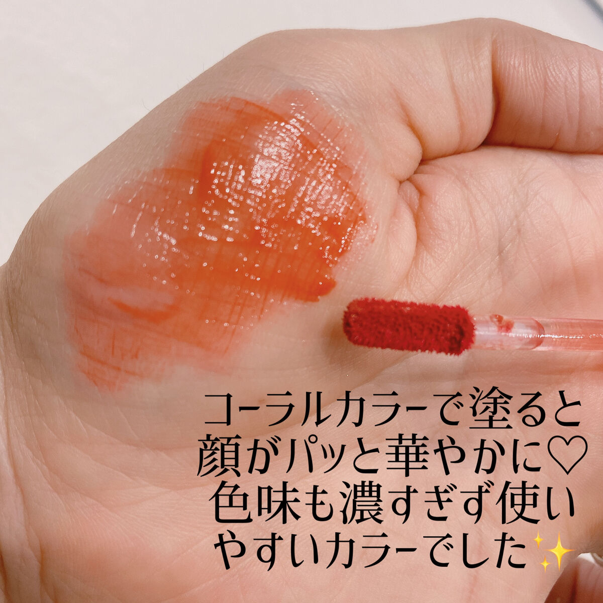 まずパケがめちゃくちゃ可愛くないですか?! 塗り心地はすっごいみずみずしい😳✨ 色味も変に浮いたりせずよかったしティッシュオフしてもこの色残り…!さすが🙌❤️ 今回のティントは、既存のティントより透明感が高く透け感のある塗り心地が特徴的で香りも強くないので韓国コスメが苦手な方でも大丈夫だと思います👯♀️✨ 本当にナチュラルにツヤっとするので一番使いやすいい質感のティントだと思いました🙌✨