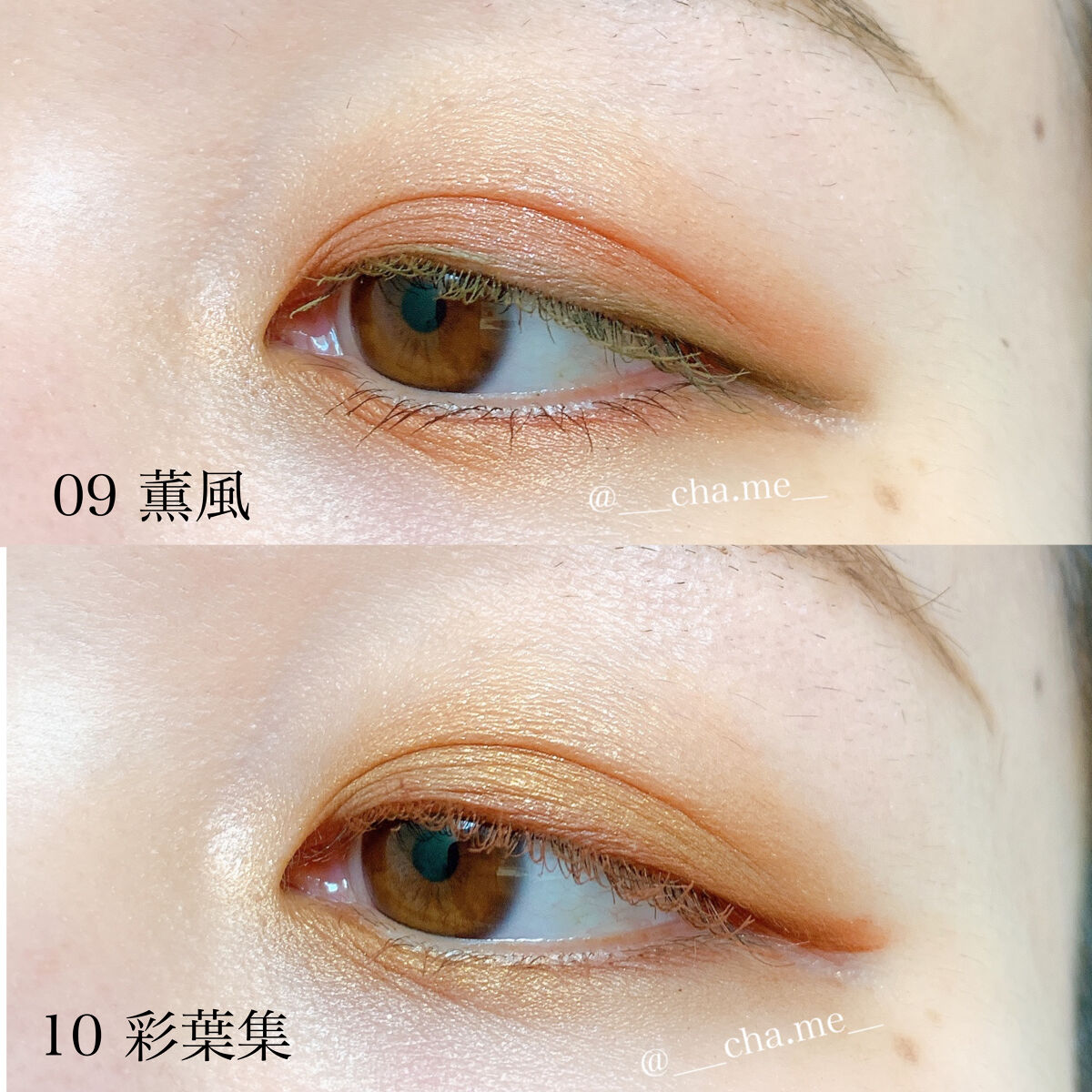 SUQQUシグニチャーカラーアイズ09薫風-KAORIKAZE-秋にピッタリなカーキパレットでカーキメイク🍁🍂カーキカラーをメインでメイクしたので暗めな仕上がり。上から左下のもみじカラーを付けて、ニュアンスチェンジ✨#秋メイク#シグニチャーカ...