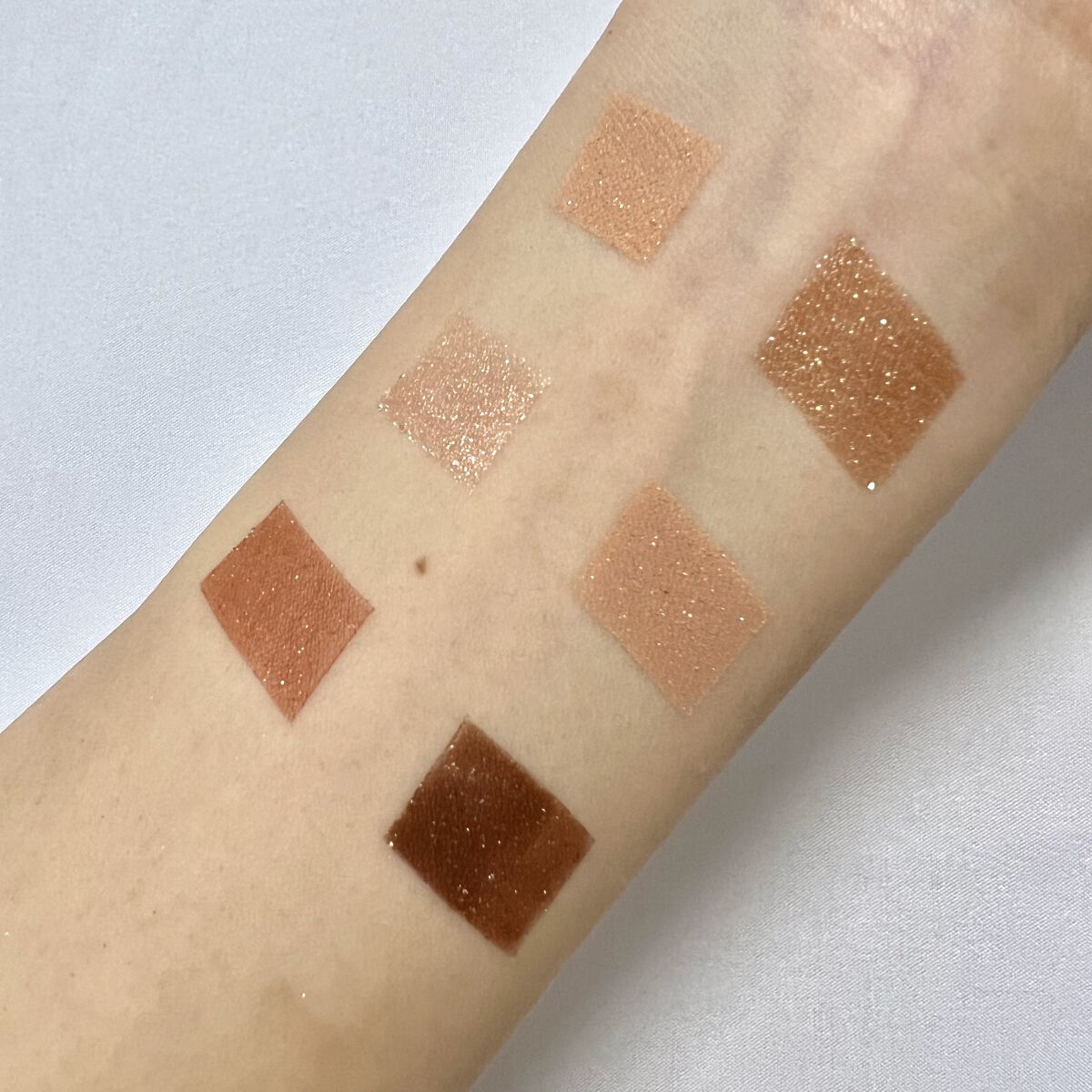 間違いなくお買い得。 何とも言えないこのきれいなグラデーションのカラーを少なくとも4色から5色位使えば、かなり目元にも奥行きが生まれそう。 しかもキラキラ型のラメが入ったアイシャドーが4色も付いているし、その他は結構マットな質感で組み合わせて使ってもかわいい。 ラメのところは大粒のラメタイプと、細かい粒子のラメタイプとそれぞれあるので、涙袋としても使えるし。普通のアイシャドーとしてラメ感を楽しみたい時にもグッド。 rom&ndのパレットシリーズは、他にもラメだらけのタイプや、マットタイプだらけのタイプ等々、いろんな種類があるのでこれは全色揃えたくなるのは何かわかる気がする笑 オフィス使いでも絶対に使える!!!お出かけにももちろん馴染むしラメがあるからパーティーでもイベントでも使えそう。家辺向きとかも書いてあったけど私的にはグリーンベースでもブルーベースでも使い方次第で全然使えると思う。 特に1番薄いベージュのスキンベージュ。ムードブラウン、ディープブラウニーはあっという間に、底見えしそう。笑