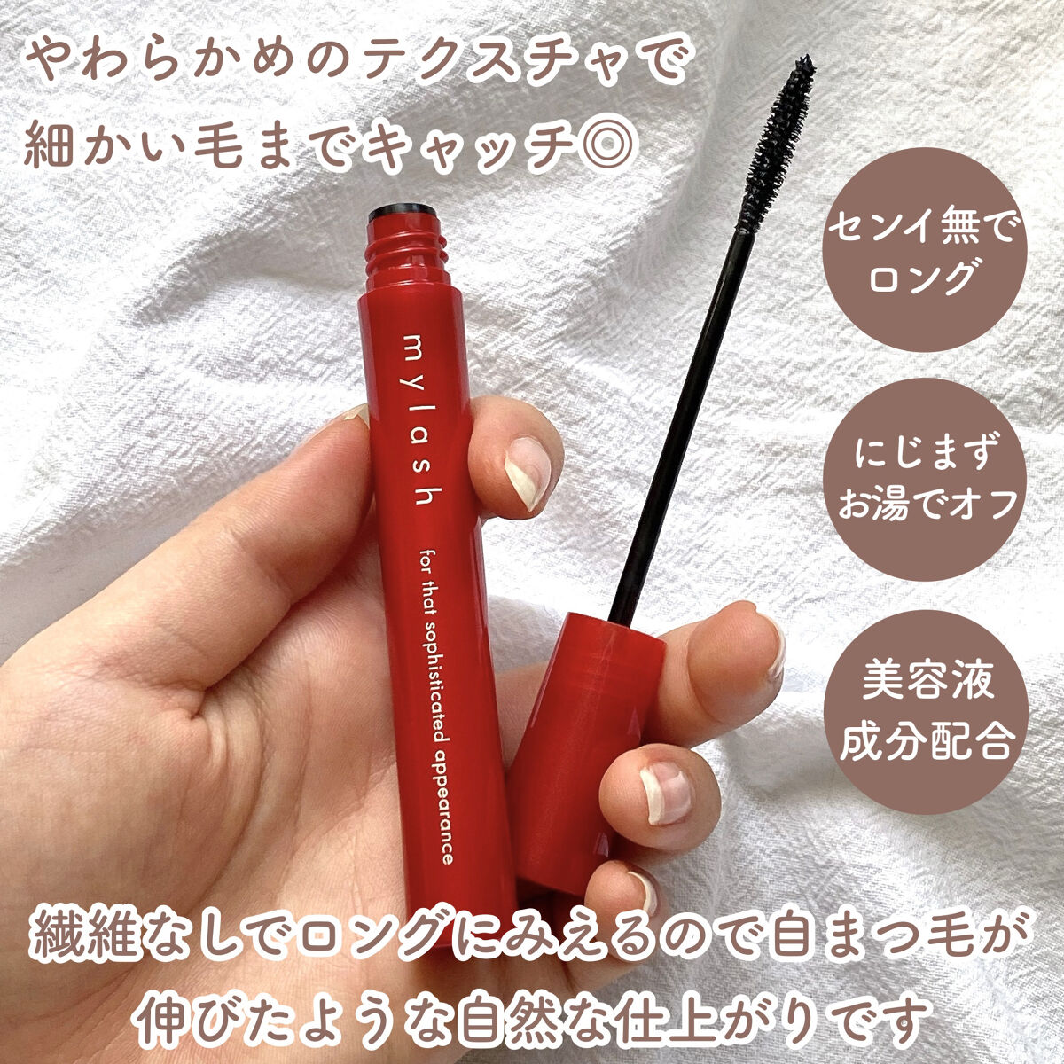 - ●センイなしで毛先をスッと自然に伸ばす!“特殊粒子”で長くする独自技術。 特殊な粒子を配合しているから、センイ無配合なのに毛先までスッと液伸びして存在感アップ。 まるで自まつげがそのまま伸びたように繊細なのに、1本1本際立つまつげで、瞳の印象度ぐんとアップ。 ●まつげをすみずみまでキャッチ!塗りやすい簡単スリムブラシ スリムで使いやすいブラシだから、 まつげの根元やキワまでぐっとブラシが入り込んで、下まつげも、短い毛も、すみずみまでキャッチ。 1本1本根元からセパレートし、感動するほど、ダマや束のない美しい仕上がりに。 ※商品パッケージを順次リニューアル。