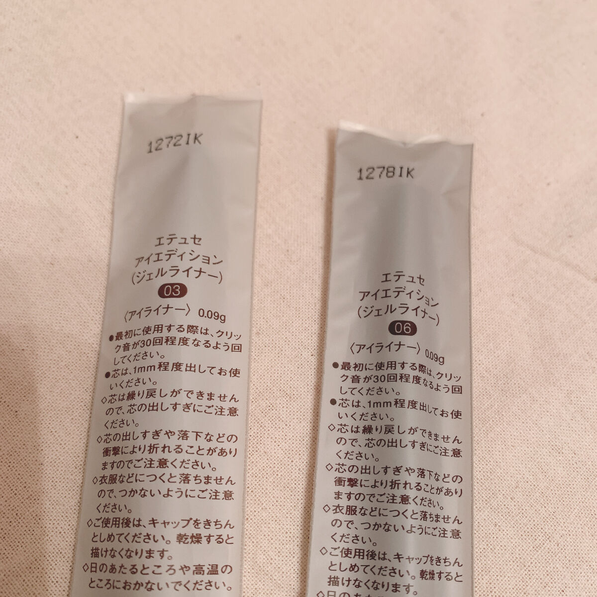 - ※2025年2月20日~順次リニューアル。尚、リニューアルにかかる返品交換等は承っておりません。(詳細は説明文末をご確認ください。) 落ちにくい。するする描ける密着ジェルライナー。 ブラウンベースでナチュラルな目力。 〇極細芯なのにすっと溶け込むようななめらかなテクスチャーで、目もとのフォルムをさりげなく際立たせる。 〇つけたての仕上がりが1日中持続。 (エテュセ スキンケアパウダー (プレスト)と併用時) 〇肌なじみの良い絶妙ブラウンベース ゴールドパール配合 〇ウォータプルーフ・スマッジプルーフ (エテュセ スキンケアパウダー (プレスト)と併用時) 〇トリートメント成分配合 スクワラン、ホホバ油 〇無香料 〇アレルギーテスト済み(すべての方にアレルギーが起きないというわけではありません)(※19を除く) <使い方> ●最初に使用する際は、1mm程度の芯が出るまで、容器を右にカチカチと30回程度なるようゆっくり回してください。 ●使用の際は、芯を1mm程度繰り出してお使いください。 <商品名称変更および原料、容器切り替えのご案内> 「エテュセ アイエディション(ジェルライナー)」は、商品名を「エテュセ ラスティング ジェルライナー」へ変更いたします。また、同時に一部原料、容器材質も変更しますが、使用性・色調・仕上がり、希望小売価格については従来品から変更ございません。順次変更になるため、号数によっては、混在しております。ご了承ください。 ※19販売名 : エテュセ ラスティング ジェルライナー a