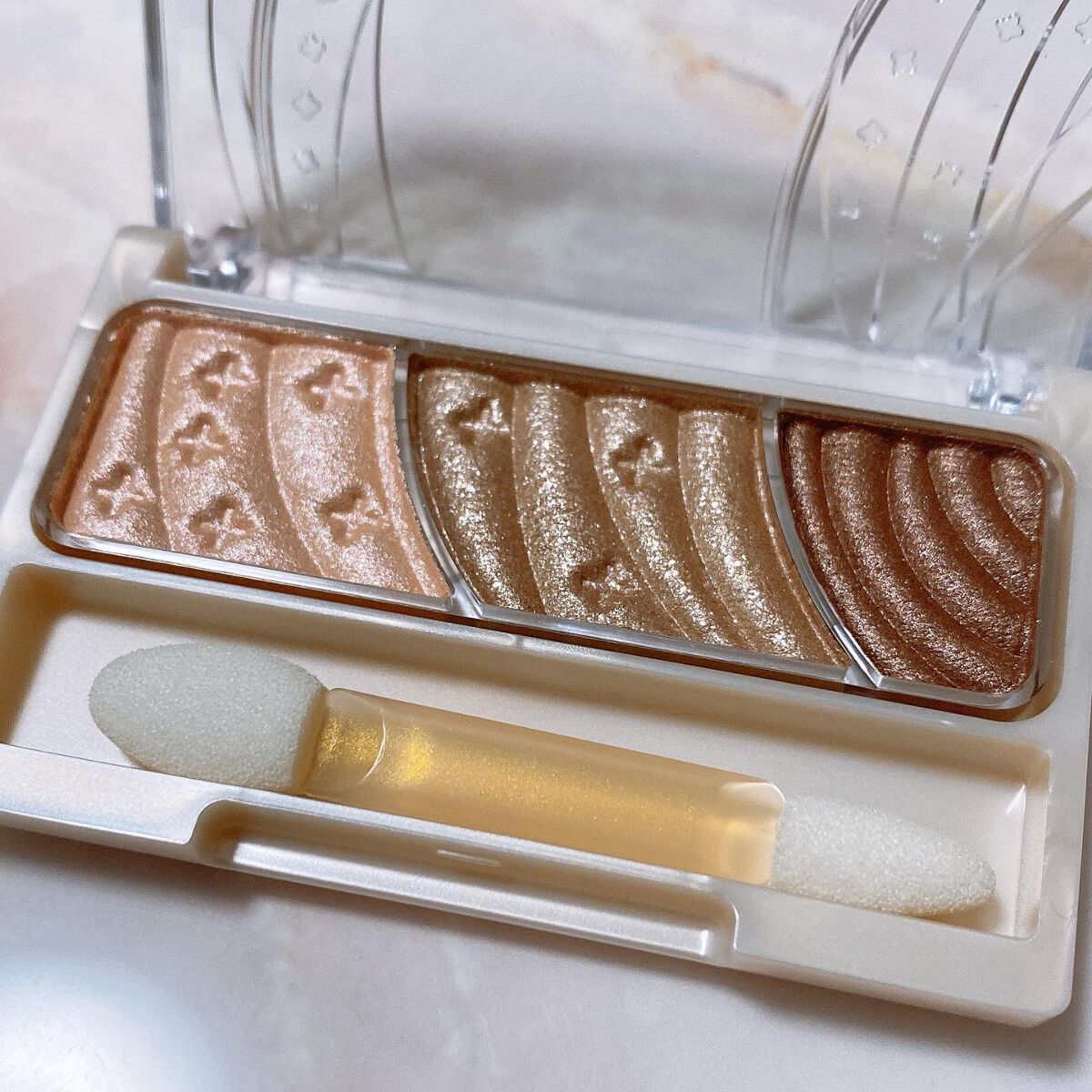 - 3色で簡単に明るく大きな目元に。 しっとり感触のアイシャドウ。 くすみを飛ばす明るさベース、ひとえ・奥二重の方でも幅広く塗れる肌なじみの良い中間色、 濃密高発色の締め色が目の輪郭を強調し大きな目元に。 微細パール配合でくすみを飛ばし、明るい目元へ。