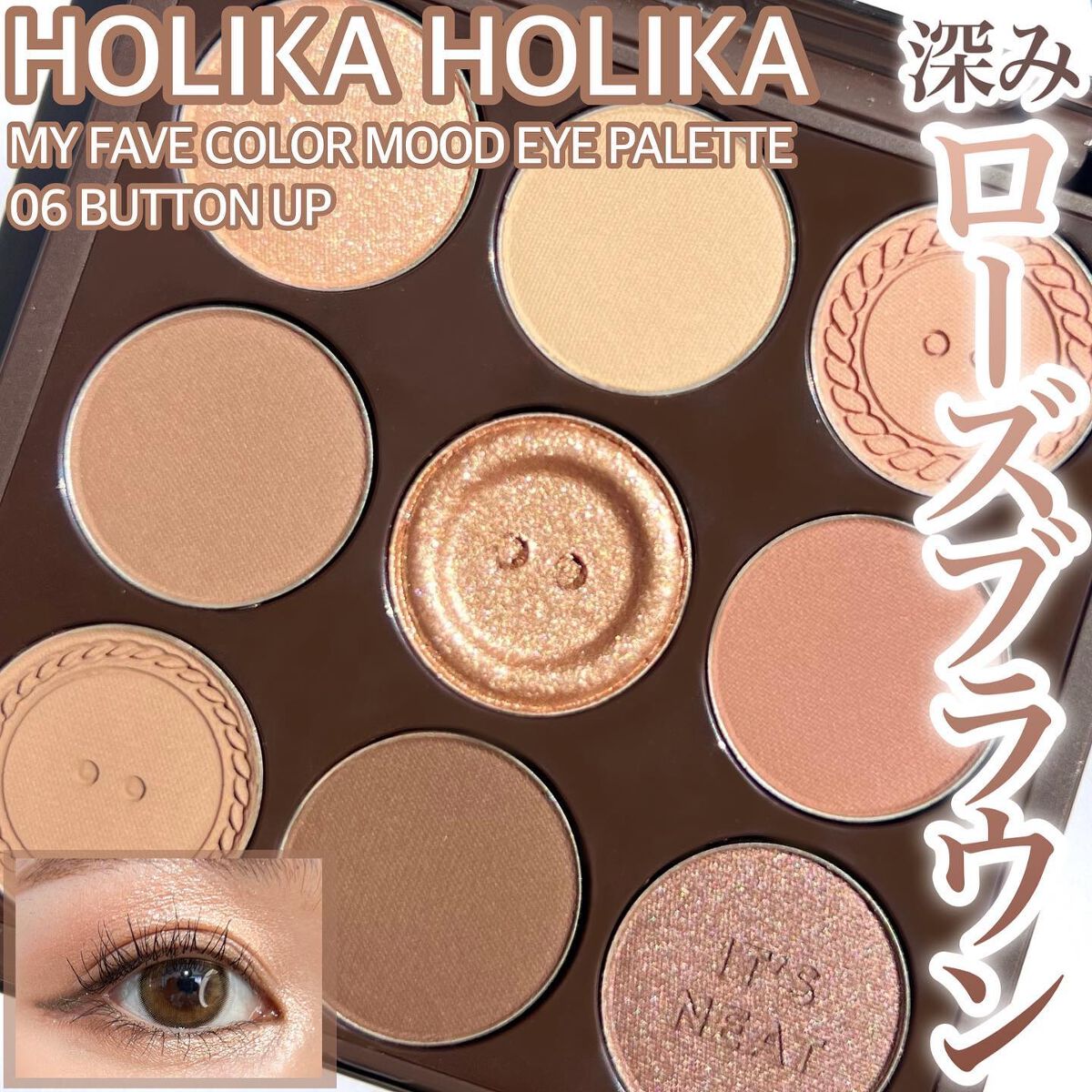 🌷HOLIKAHOLIKAホリカホリカ マイフェブムードアイパレット *06BUTTONUP#クラシックボタン#ローズトープ穏やかながらも魅惑的なローズアンドサンダルウッドの香りとにかく眼福🥹💖この一言に尽きる。ニュートラルなブラウンパレット...