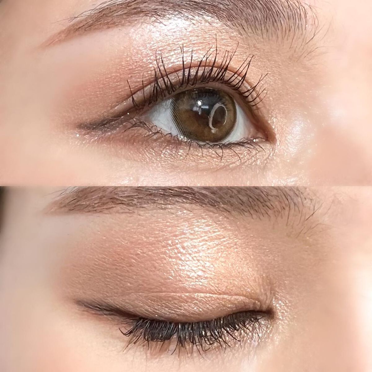 右上のピンクラメをベースに仕込んでメイクしたんだけどツヤと煌めき感えぐすぎる😳💎可愛い、、 そこに右下のカラーを重ねるとじんわり血色感が滲み出るような目元になるよ🦩 これは欠品店舗続出しそう🫣