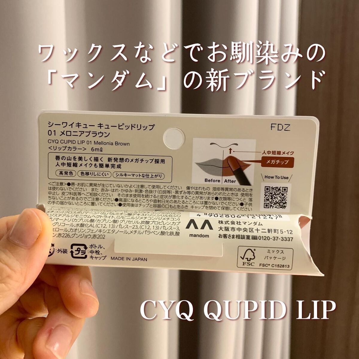 - ※2023/6/16〜順次パッケージリニューアル。尚これにかかる返品・交換は承っておりません \人中短縮メイクだけで一気に垢抜けるってほんと?/ 【垢抜けくちびるの秘密】 Point①:唇の山にフィットする新発想のメガチップ採用 スタンプし塗布するだけで、きれいに山が描ける Point②:ムースのような付け心地 高発色で、ふんわりな仕上がり Point③:マスクやコップにも色移りしにくく、色味が長時間キープ CYQならではの魅力的な提案 キューピッドリップで、人中短縮メイクが簡単に完成し、 顔の余白を少なく見せ、小顔効果を演出