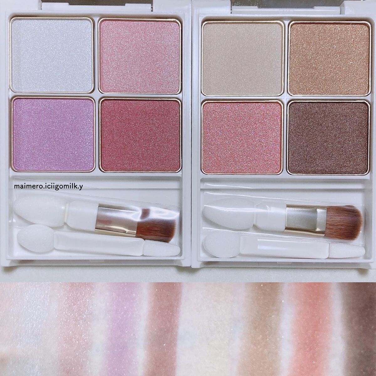 まず、色味がどんぴしゃだいすき💓 どちらをメインに使っても大人かわいいが作れる! あと、ラメも偏向がかかってて角度によって変わる色味がよりうるっと感を出してくれます。 気になるところは、色味が淡いのでぼけやすいかなぁ。あと、色もちもさほどかな。 ただこのお値段で、わたしは大満足です🙌