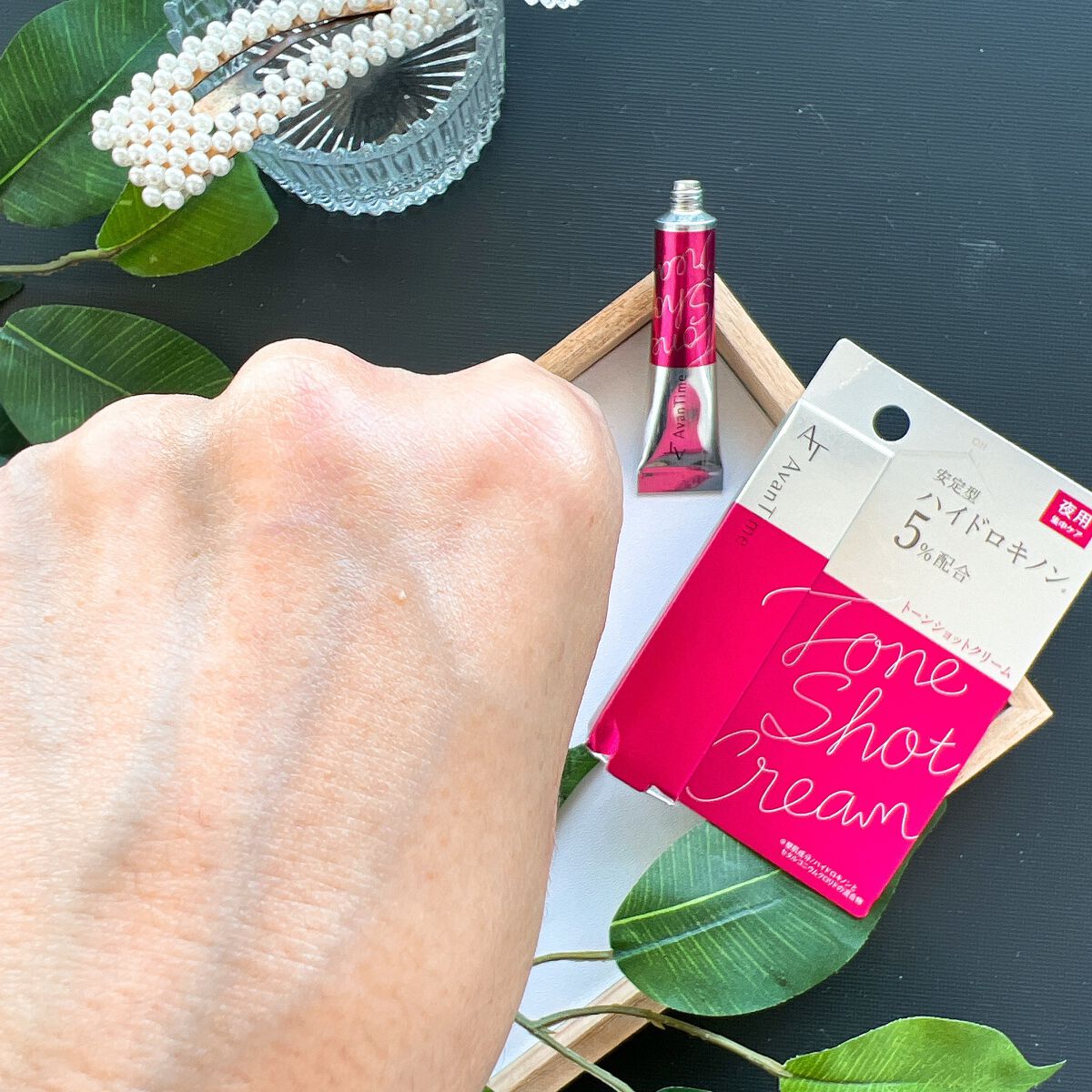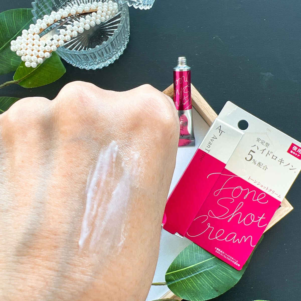 - 「アバンタイム トーンショットクリーム」は安定型ハイドロキノン SHQ-1を5%配合したクリームです。成分が徐々に溶け出しターゲットエリアにアプローチする製品設計であるため、肌にやさしく持続的な作用が期待できます。滑らかで密着しやすいクリームタイプなので、気になる部分を集中的にピンポイントケアすることが可能です。夜のスキンケアの最後に、お肌の気になるポイントにご使用ください。