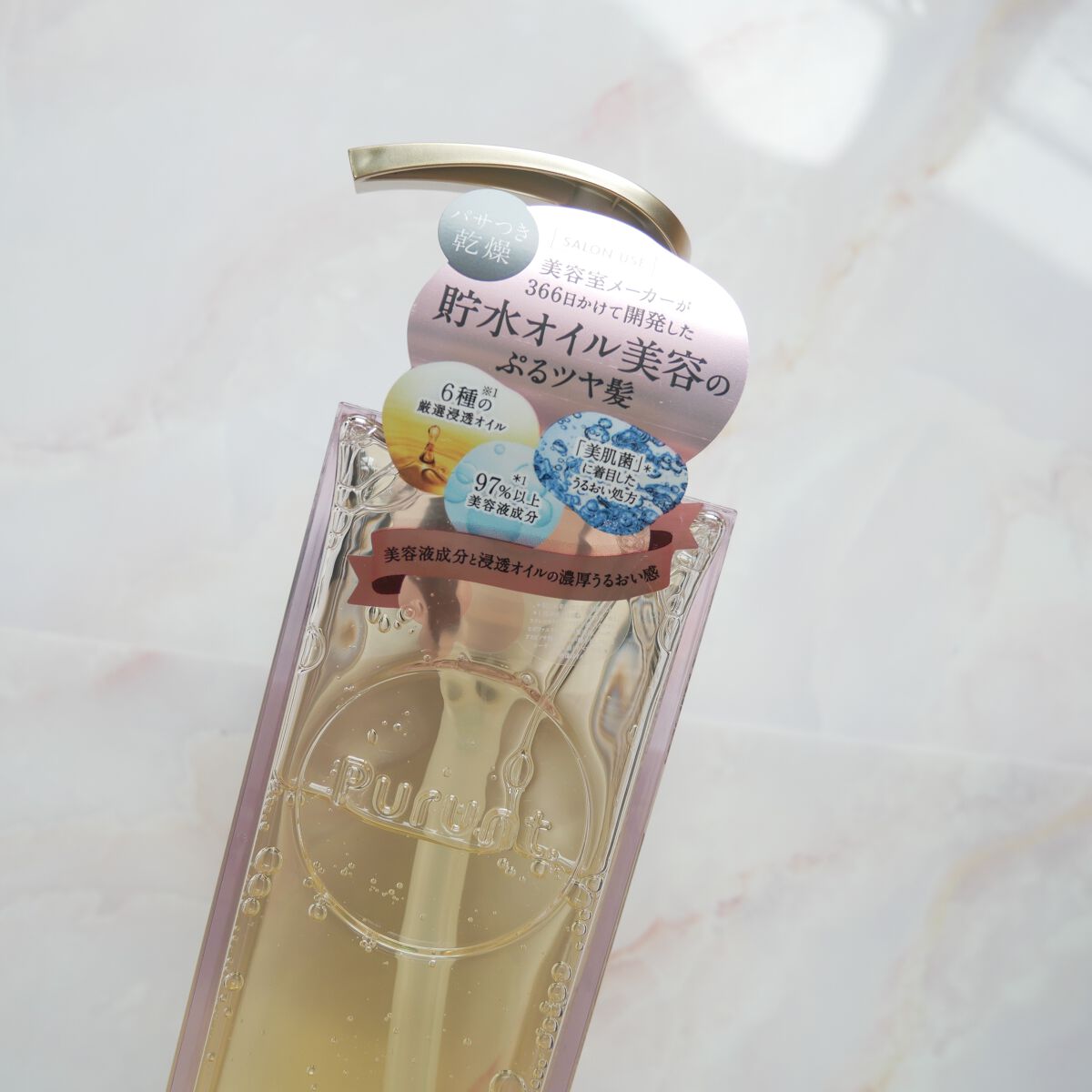 - 美容室メーカーが 366日かけて開発した貯水オイル美容のぷるツヤ髪 肌本来の環境を整え、みずからうるおう地肌に導く「美肌菌」に着目。髪と地肌をうるおす「美容液成分」と、水分蒸散を防ぐ「浸透オイル」を独自バランスで調合した、スキンケア発想の「パサつき・乾燥」特化型ダメージケアブランドです。 選択吸着機能成分:ヒドロキシアパタイト配合→汚れの原因を選択的に洗浄し、必要なうるおいをキープします。 キューティクルケア成分:加水分解シルク*1・加水分解ケラチン(羊毛) 配合→なめらかな指通りの良い髪ヘ整えます。 *1 (加水分解シルク/PGプロピルメチルシランジオール)クロスポリマー