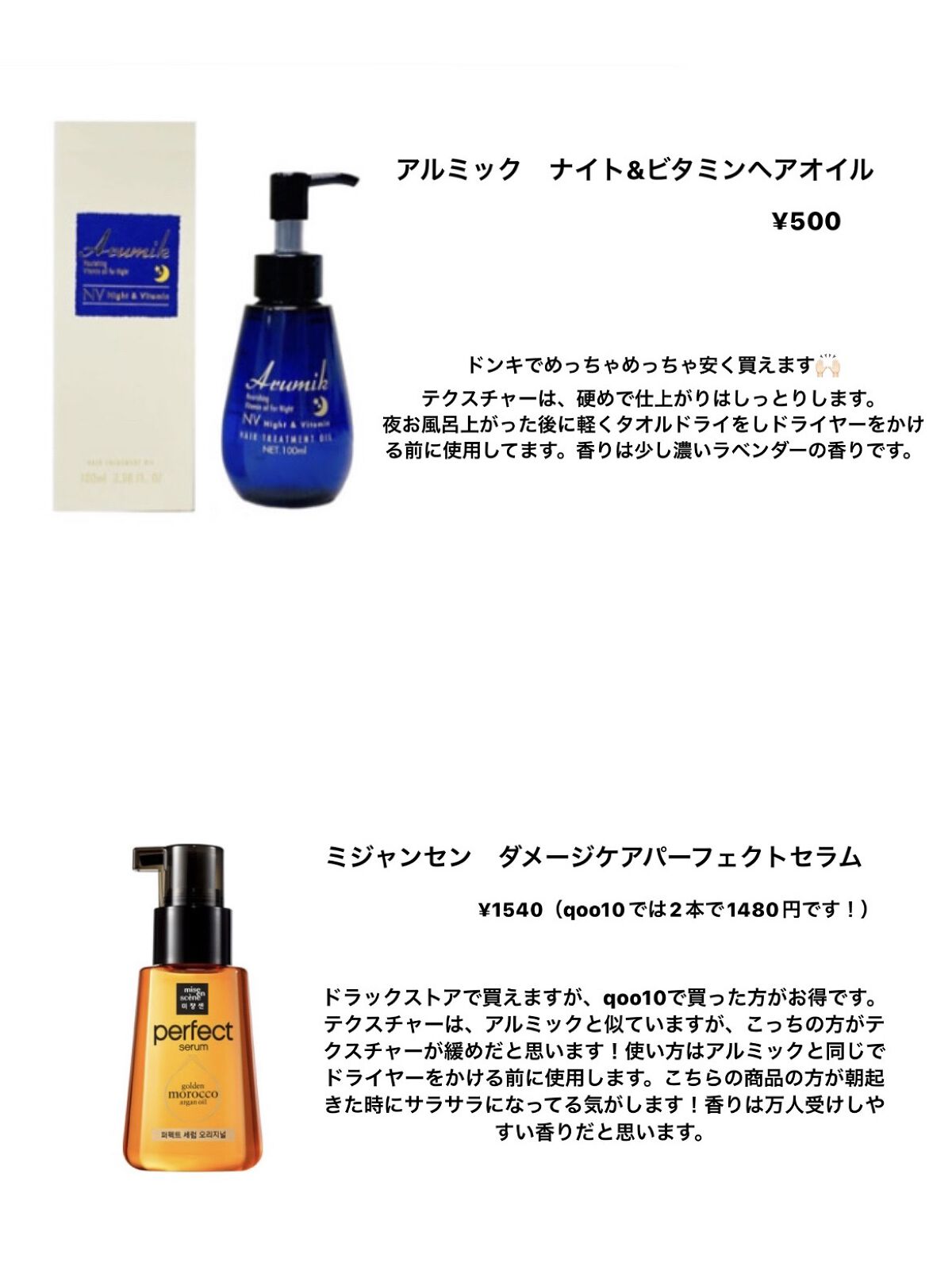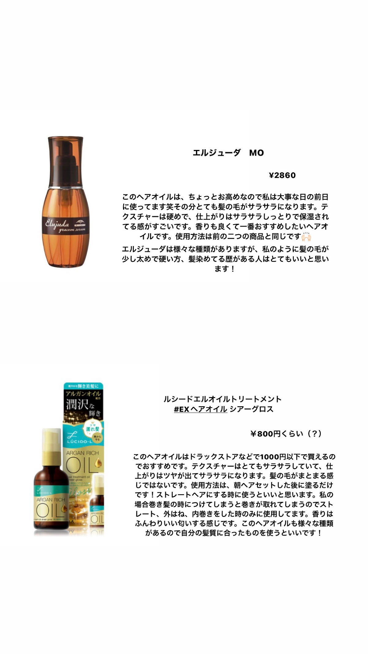 | ジェルのようなオイルです! ドライヤー前に塗っておくと 髪のまとまりがあってよかったです◎ | 詳細を見る | |