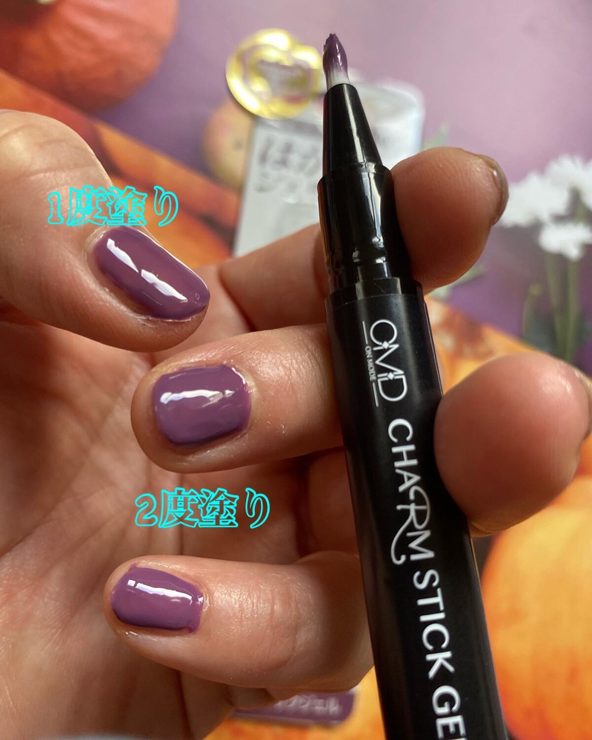 色は30のムーブ💜 まずは、コットンにアルコールを含ませ爪の周りを綺麗に💅✨ この時点だと透明感のある薄い紫で発色も藤の花や紫陽花のような色です💠 なんだか思っていた紫💜ではなく、ちょっと昔のレディース🏍のような色になっちゃったのが気になりますが、まだまだこれからも勉強していこうと思います°・*:.。.☆