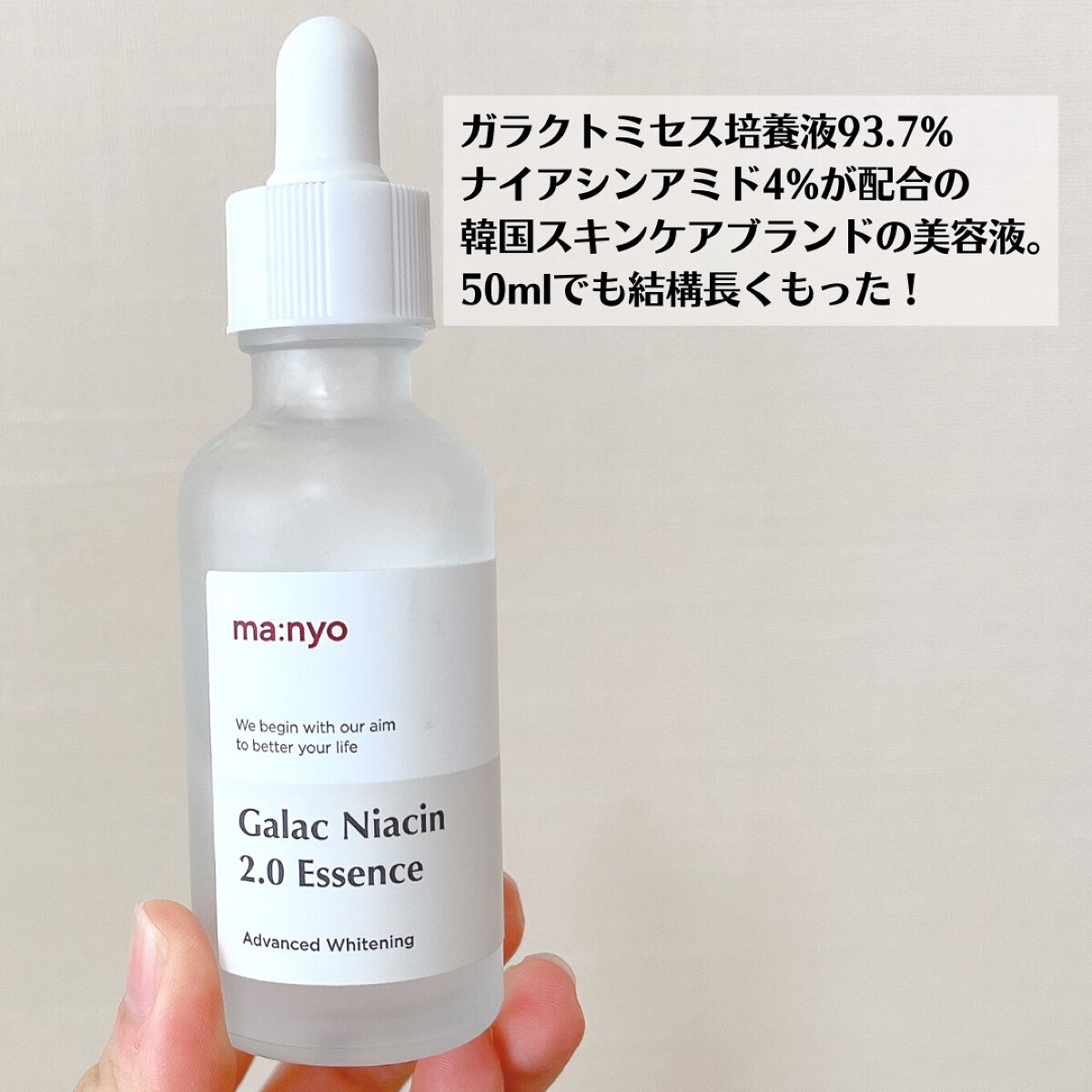 魔女工場ベストセラー美容液🎊 SNSでも良く見かけていたので気になっていました~🌟 高濃縮ガラクトミセスを93.69% 保湿成分ナイアシンアミドを4%配合。 水のようにサラッとしたテクスチャーでさっぱりとした使い心地。