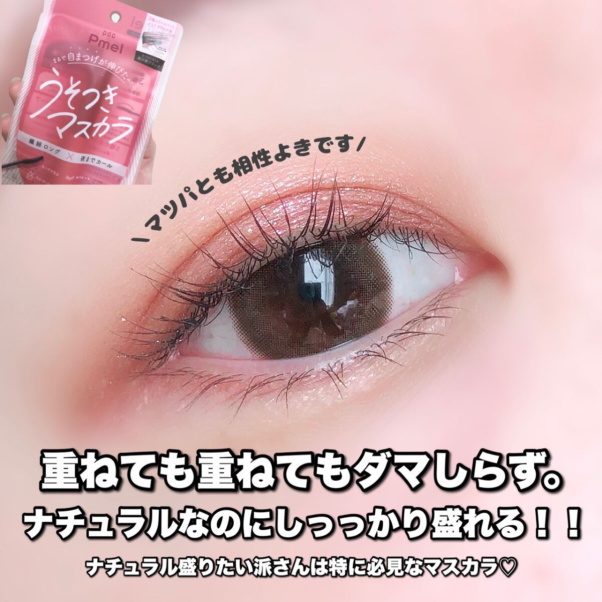 - "さっと仕込んで 私らしさ引き出す ピメルではじける あなただけの魅力"。 繊細ロング×長時間カール、まるで自まつげが伸びたみたい!"うそつきマスカラ"。 さっとひと塗りで、ナチュラルだけど目ヂカラUPを演出するまつげになじむ「透け感ブラック」。 肌馴染みが良くさらに軽やかな「透け感ブラウン」。 大人可愛い限定色「透け感モーヴピンク」。 印象的でおしゃれな限定色「透け感ナイトグリーン」。 重ねてもダマになりにくいセパレート仕上げでしっかりカールキープ。 綺麗なまつげが続く、ウォータープルーフ。