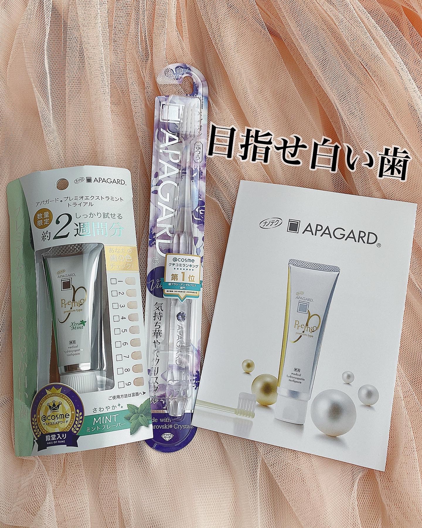 MimiBeautyキャンペーンで当たりました。#アパガードプレミオ試供品サンギ開発のむし歯予防成分「薬用ハイドロキシアパタイト」を高配合※。プレミアムケアでときめく白い歯に。ライトミントでリッチな使い心地。☆独自成分ナノ粒子「薬用ハイドロキ...