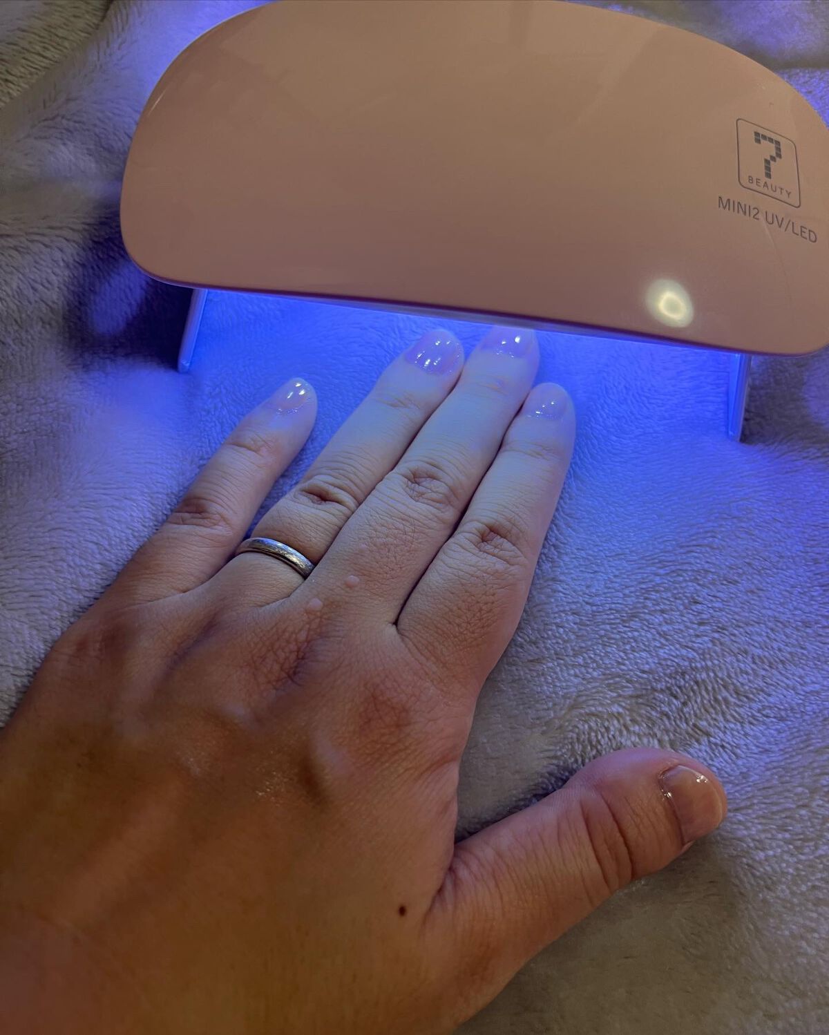 こちらペンタイプになっているので塗るのがとても簡単でした。 ペン先は白色ですが、ペンの下を回すとジェルが出てきます。少しずつ出てくるので、液が垂れたりすることもありませんでした😊👏🏻 爪に塗った後はスティックジェル+UVライトで照射。照射時間も長くなく、乾くのが速いので、本当に手間なく簡単にジェルネイルができました🥰🤲 そしてこのネイルのすごいところは剥がせるところ!!なんと専用のリムーバー等を使用せずにオフできるんです!本当に簡単にペリッと剥けます👏🏻👏🏻👏🏻 爪への負担も少ないのもとても魅力的🥰❣️ 小さい子供がいてなかなかネイルに通う暇はないので、自宅で手軽にできるのはとってもうれしいです☺️❣️