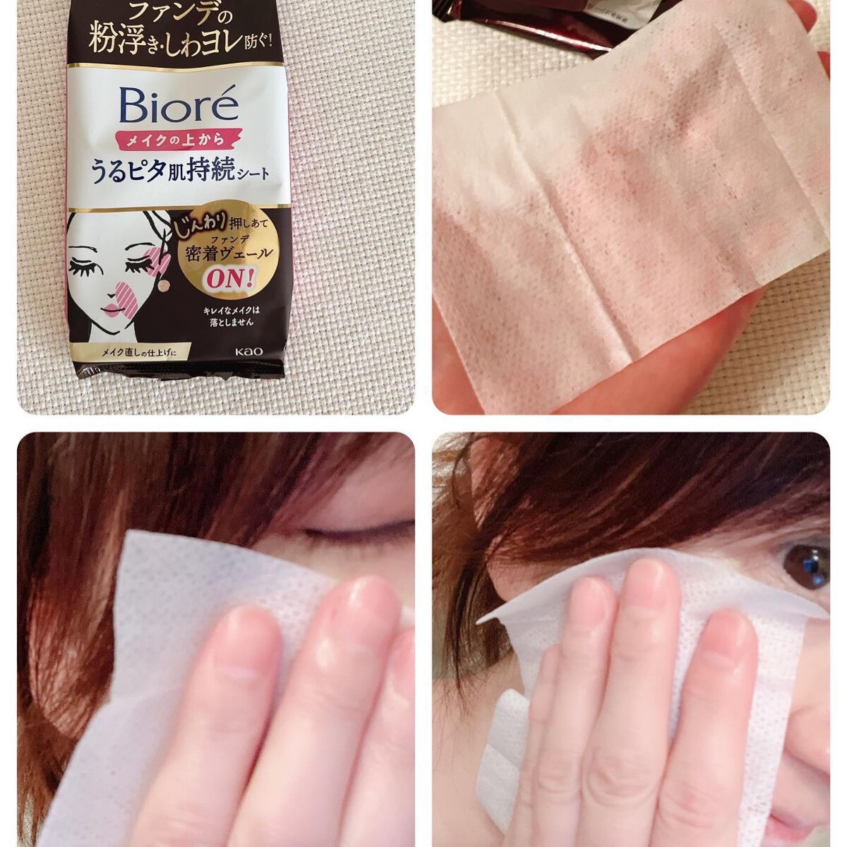 ビオレ様より商品提供していだたきました。Bioreメイクの上からうるピタ肌持続シート10枚入試供品試供品なので10枚入ですがコスパ良さげ◎《特徴》ファンデの粉浮き・しわヨレ防ぐ朝のメイクを密着ロック*¹!*¹うるピタ肌続く:シートによるメイク...