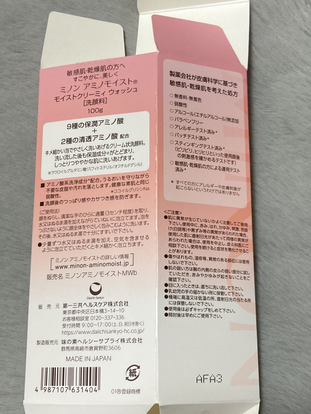 ミノン アミノモイスト モイストクリーミィ ウォッシュ | 1,650円生産終了 |