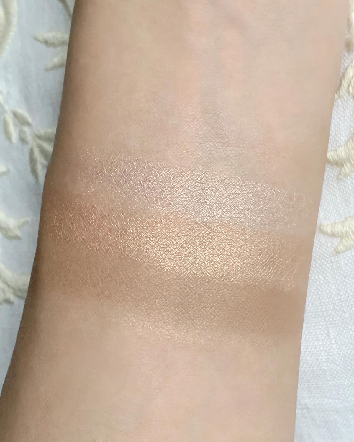 ハイライトとチークが1つになったグロウカラー 普段使いしやすい多色ラメのリキッドライナー フェイスグロウカラーは黄味がかったカラー テクスチャーは柔らかくて手触り良いです ニュートラルなカラーやブルーがかったカラー展開も期待🤍 ライナーはピンクやブルーなどの多色ラメ入り ラメが細かくて光り方が上品✨ デイリーに使いやすいのもポイント高い 乾くとピタッと密着 強めにこすってもラメが取れないので 特に夏シーンに大活躍しそう