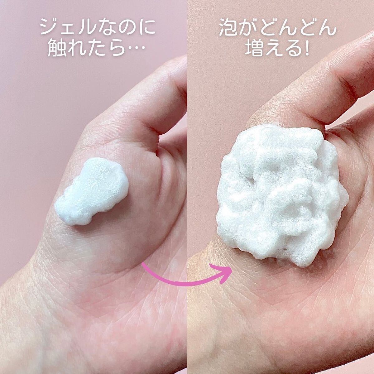もこもこ増える泡で、毛穴の奥まですっきり洗う洗顔料! 手に出した時にはジェル状。お肌にジェルをなじませるとすぐに、きめ細かい泡に変化して、びっくりするくらいもこもこ増える! 泡立ての手間がないので楽チンだし、ライトメイクならメイク落としとしても○。まつエクOK。 洗いあがりはつっぱり感はなく、つるんとした触り心地のとっても良いお肌に!