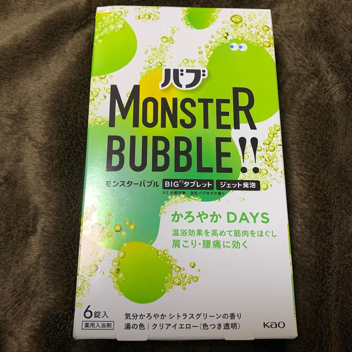 花王様からいただきました。バブモンスターバブル かろやかDAYSモンスター級に沸き立つ炭酸泡がお湯に溶け込んだら温浴効果UPなんだって。かろやかDAYSはカラダがほぐれてシャキッと軽快浴。大きめのタブレット。強炭酸で発泡力がすごいです。シトラ...