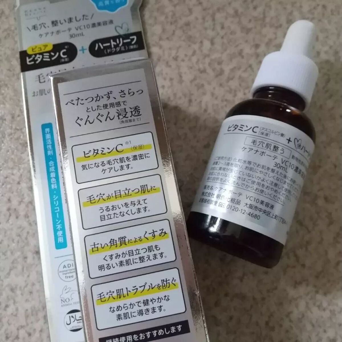ケアナボーテケアナボーテVC10濃美容液 30ml ¥1,980ピュアビタミンCを10%配合の美容液。化粧水のあとに使います。サラッとしたテクスチャーで(少しとろみあり)肌馴染みがいいです。塗った後はちょっとペトッとするかも。肌がピリッとした...