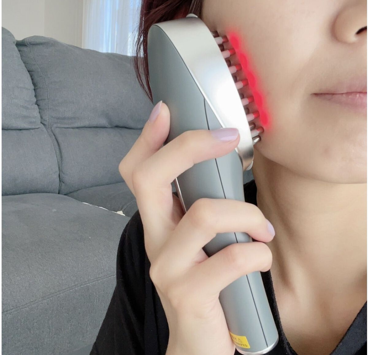 エイジングケアクリニック医師監修のスカルプ電気ブラシ⚡ 頭皮や顔、身体などこれ1つで全身ケアできる電気ブラシだよ(*^^*) 筋肉の深部に作用する高周波を採用。普段 鍛えにくい頭筋や表情筋にアプローチし、顔&頭皮のもたつきをケア✨️ 赤と青 2色のLEDライトが使用可能。肌のハリが気になる時は『赤LED』で弾むような肌へ 毛穴が気になる時は『青LED』でひきしめ☺️