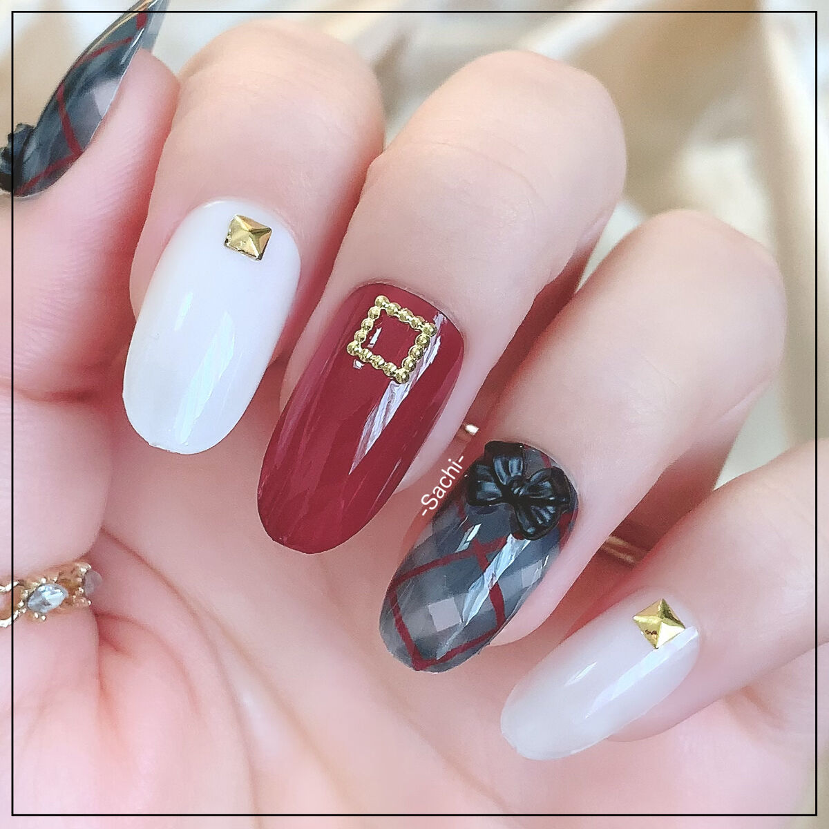 ヌーディなベースカラーを活かした、ちゅるん♡な質感のチェックネイルに挑戦してみました🙌 SHEINのカラージェルは現在廃盤になってます💦 代わりにセリアのミルキーベージュあたりを使っても可愛くなりそうです💖 引きで見たりパーツを付けたりするとガタつきも案外気にならないので、気になった方はぜひチャレンジしてみてください💪