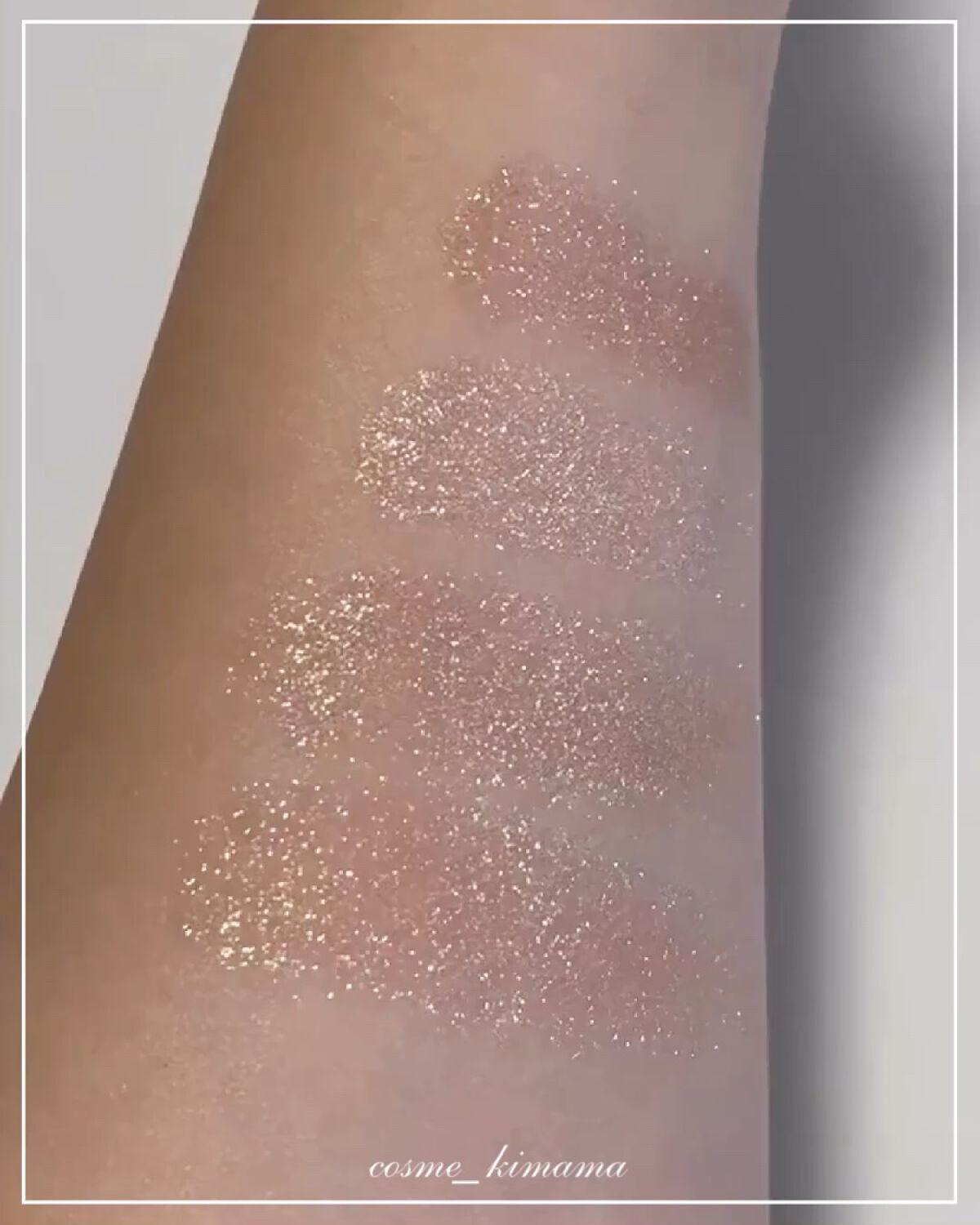 今回セレクトしたのは、#メリンダベージュ 他のシャドウよりもベースカラーがしっかり発色して1つでアイメイクを完成できる💗 しっとりした粉質で粉落ちも少なく、 大きめなシルバーラメが可愛いです🥹 今回セレクトしたのは、#ムーンストーン 一番ラメが細かくて、ギラギラ光るというよりは、キラキラキラキラ✨✨って感じ! カラーはほとんどなくラメだけがつくので 他のアイシャドウとの相性◎ 今回セレクトしたのは、#Mariage 一番大粒なラメで輝きNO.1✨ ラメ自体がちょっとグレーかかってるからか アイシャドウに色の影響は結構あるよ🫡 明るめのアイシャドウの色味を落ち着かせたいときにも◎ 今回セレクトしたのは、#G10 #PEARLFECTION 韓国コスメらしく偏光ラメ💘 ベースカラーはナチュラル発色だけど、ピンク味を感じるオレンジベージュで明るく見えるよ◎ さっしー愛用コスメで有名で、濡れツヤまぶたに✨ プチプラなので、初めてのラメシャドウにも🫶🏻