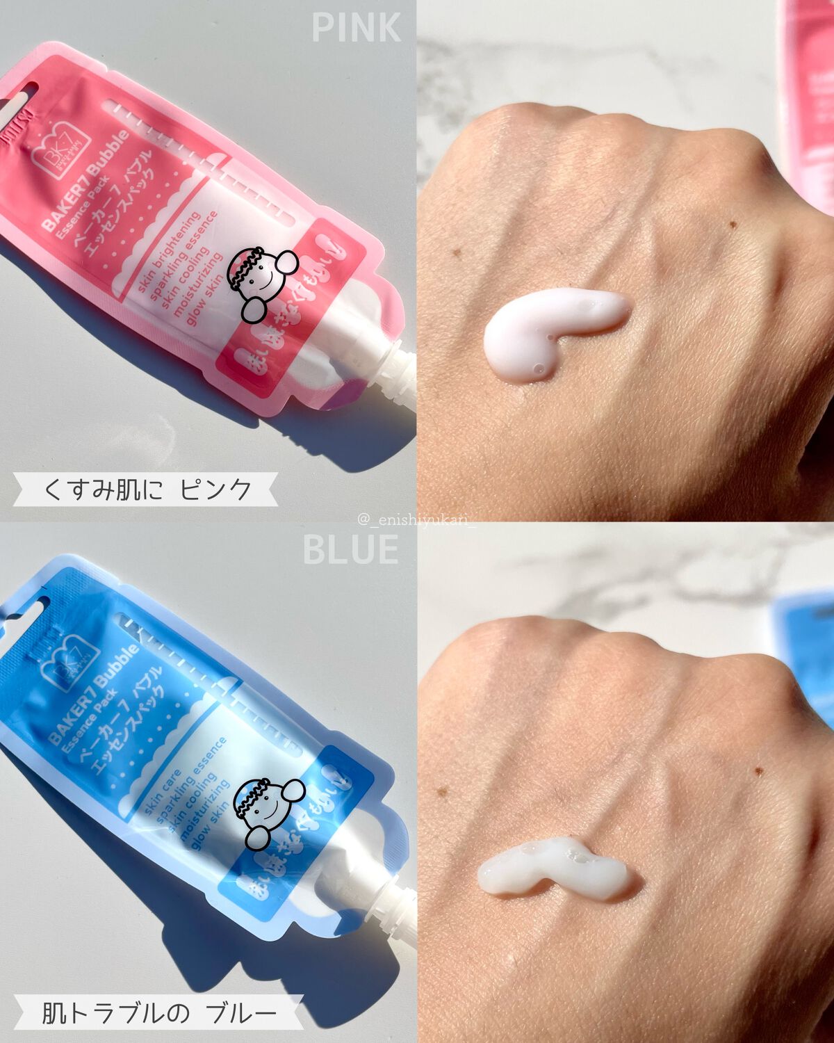 リピなし辛口レビュー(⌯₄⌯)ᐝでも良いなら見てくださいませ🙂↕️⋆꙳BAKER7マジックバブルエッセンスポーチパックTピンクの方と大差なくって感じ感想も変わらんわ👋パケかわゆい🥰❤️❤️ジェルがどんどん泡になってく!めちゃくちゃ面白いんや...