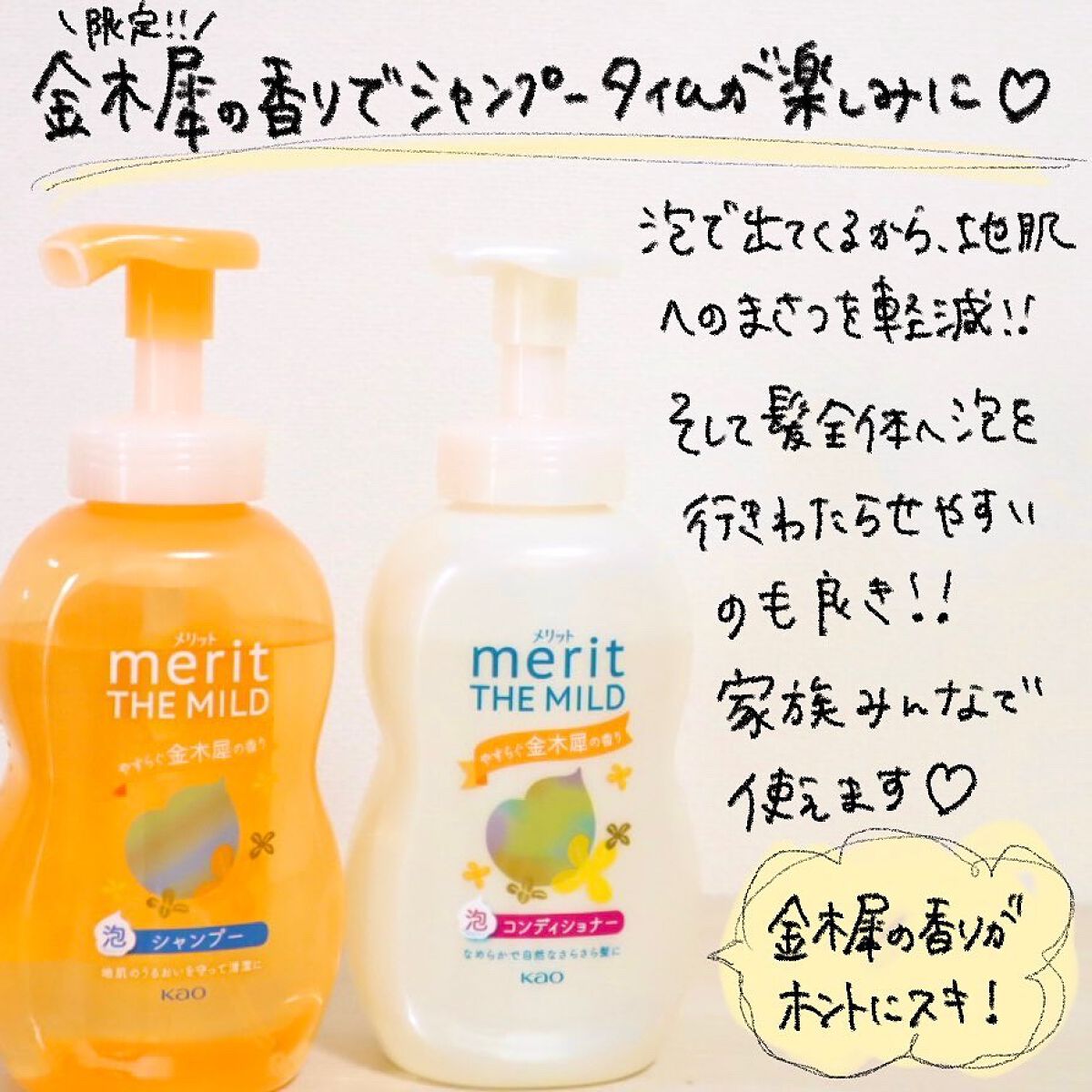 地肌・髪へのやさしさを考えて、最初から「ふわもこ泡」で出ることにこだわって開発❕ 初めから泡で出てくるから、地肌にやさしく洗えます。 また、地肌や髪に泡がムラなく馴染むので地肌の汚れもスッキリ落としながら、地肌の大切なうるおいを守りながら清潔に洗えるのでさらさらに💇♀️♡ 子どもと一緒に使えるのもいいよね♪ 数量限定品の「金木犀の香り」が、すごくいい香りでおすすめです🤍