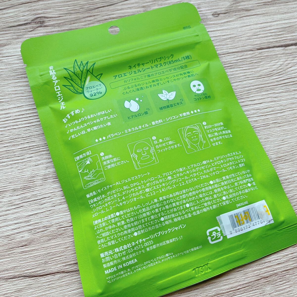 商品詳細情報ネイチャーリパブリック マイルド&モイスチャーアロエジェルシートマスク