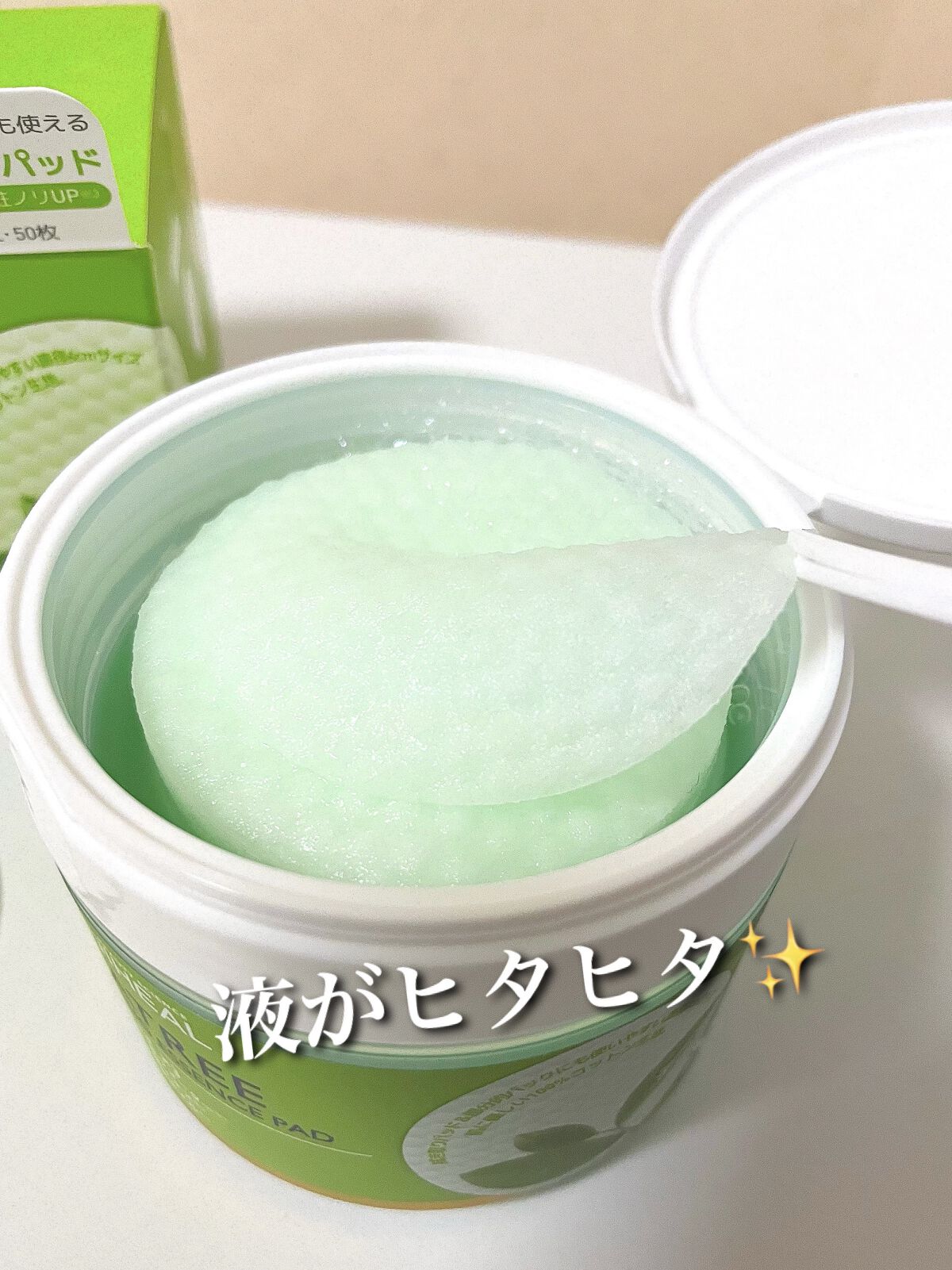 - 肌荒れを予防するティーツリーエッセンス(ティーツリー葉水、ティーツリー葉エキス、ティーツリー葉油の3種類を整肌成分として)を、コットン100%の肌に優しい使い心地のパッドに贅沢にたっぷり配合しております。 片面はエンボスコットン、もう片面がソフトコットンになった「デュアルパッド」になっており、用途に応じての使い分けが可能です。エンボスコットンの面は、手軽に角質・毛穴汚れをオフできる拭き取り化粧水としてお使いいただけます。ソフトコットンの面は、乾燥が気になる部分、肌荒れ予防や集中ケアしたい部分のポイントパックとしてお使いいただけます。 ※2022年9月以降パッケージリニューアル。