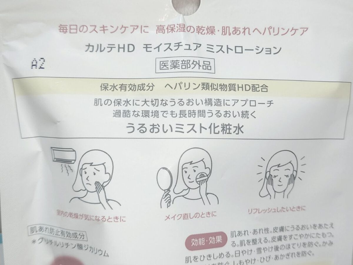 - 【うるおいミスト化粧水】 信頼の保水有効成分「ヘパリン類似物質HD※」を配合したミスト化粧水です。 こだわったのは、いつでもどこでも快適にケアできる使い心地。シュッとひと吹きで粒子の細かいミストがふんわり肌を均一におおって、ベタつかず、すみずみまでみずみずしいうるおいをチャージ。 保水するだけでなく、肌のうるおい構造(角層ラメラ)に働きかけてバリア機能の回復をサポート。 コーセー自信の技術“うるおい浸透カプセル”を採用。使うたびにうるおいを角層深く届けてキメの整った肌へ。 携帯しやすくメイクの上からも使えるミストは、日中の肌あれ対策にも最適。手軽に本格的な保湿ケアが叶います。 ※ヘパリン類似物質のこと <販売名:HDミスト>