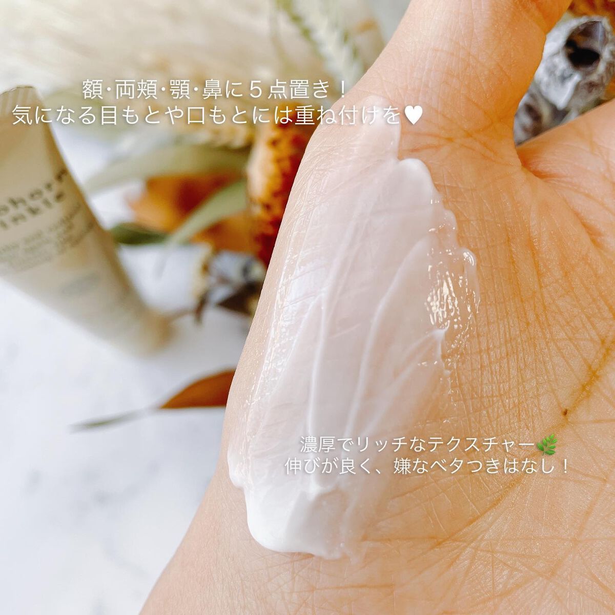 | テクスチャーは軽くのびの良いクリーム みずみずしくすっと肌になじみます | 詳細を見る | |