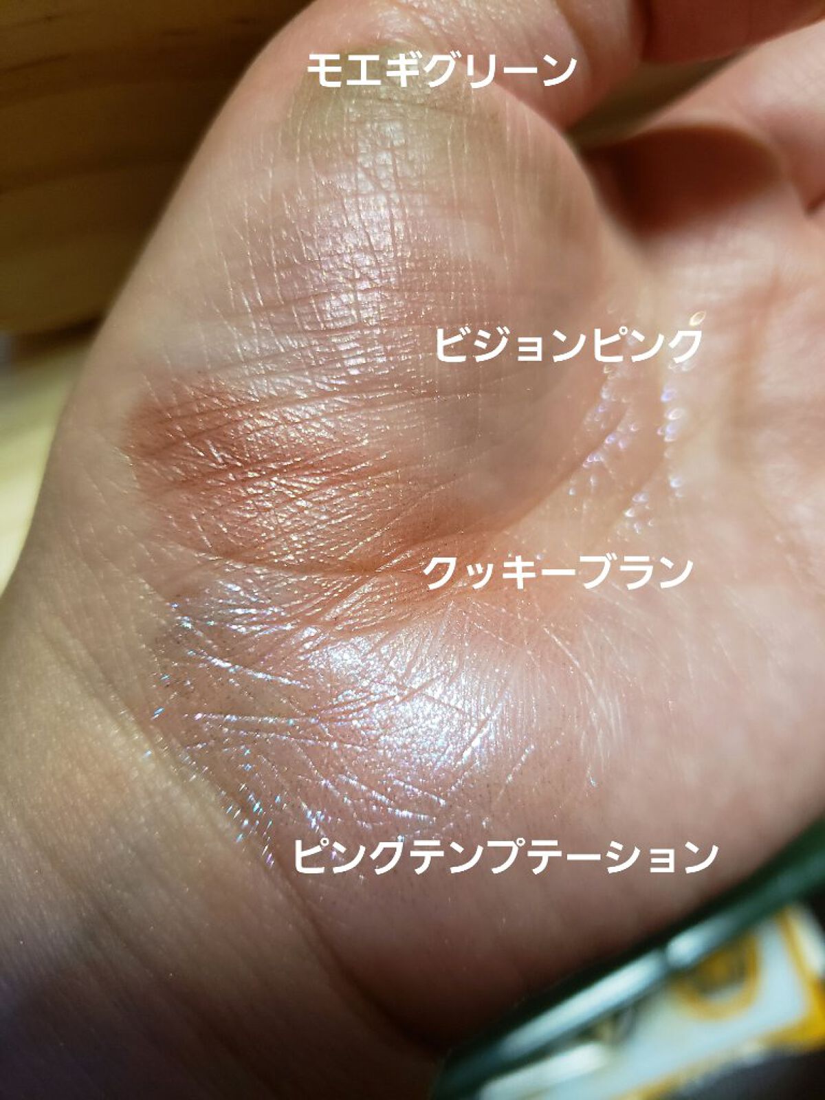 パッケージもすごく可愛い❤ 安いのに高発色✨ モエギグリーンとエメピスターシュ、グリーンカラーが同じみたいに見えるけど若干違う? モエギグリーンはダークが入ったカーキ、エメピスターシュは抹茶のような鮮やかなグリーンカラーなような気がします。 そして1番気に入ったのは16クッキーブラン🍪 オレンジブラウンカラーでとにかく艶がすごい✨ イエベさんにオススメしたいカラーです😀 私が悪いのもあるかもだけど 16のピンクテンプテーションを開封する際に落としてしまい粉が崩れてしまった😣 完全に粉々になったわけではないけど触ると動くw これ持ち運びしたらおそらく完全に粉々パターンだと。 家用にします みなさんも使う際にはお気をつけて😅 100均のアイシャドウでさえ落としたときに崩れなかったので少し残念でした。