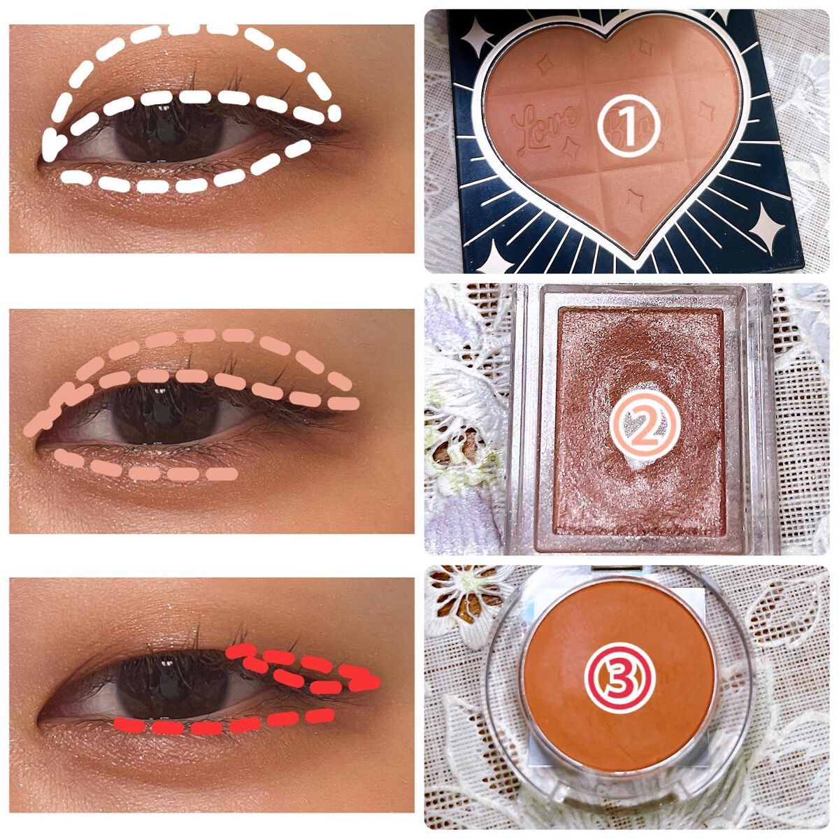 バレンタインボックスはめちゃめちゃツヤ感やラメ感が可愛い💕 使いやすいカラバリだからデイリー使いしやすくておすすめ◎ ②のブラウンが程よいピンク味がある上品なカラーでツヤ感がめちゃめちゃキレイ✨ ④のピンクシャドウを涙袋に入れるとぷっくりしてどこか色っぽい目元になる! リップはレッドブラウン💋 このレッドブラウンめちゃめちゃ可愛すぎてやばい😍 ふわっと系のマットだから使いやすいし すごい色っぽい唇に仕上がる💋
