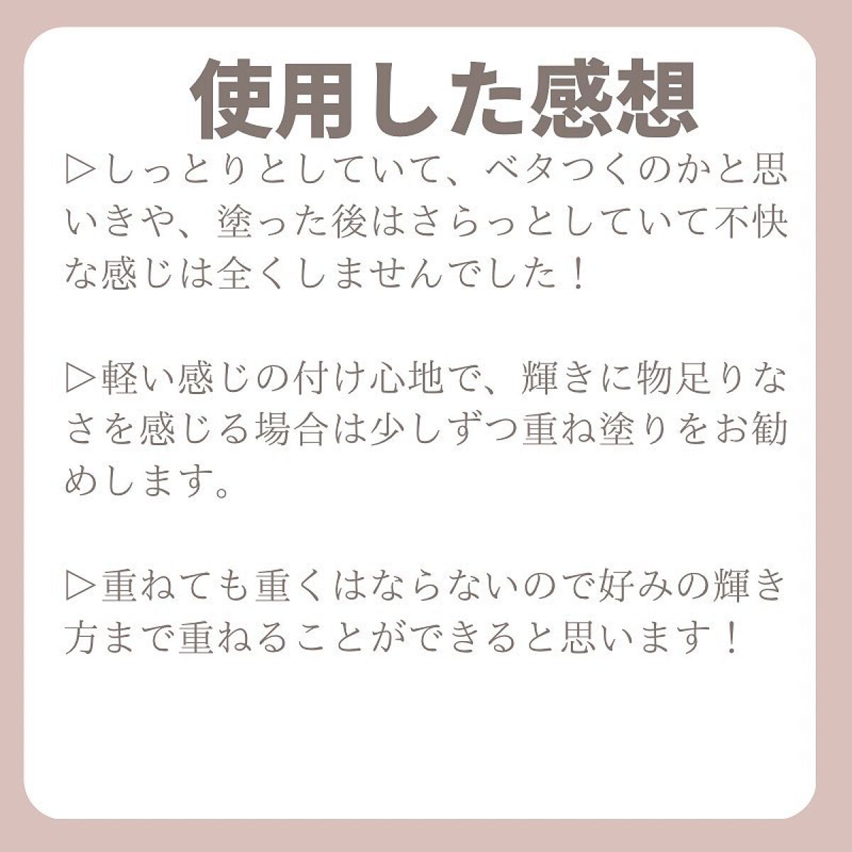 高屈折オイルで叶える、生っぽ艶肌。 パウダーは多色パールミックスで天の川ようにきらめいて、ブルー・パープル・シルバーのマーブル状のパールやラメが、宇宙に広がる星雲のように輝く🚀 ダイアモンドのような輝き 微粒子ラメ&大粒ダイアモンドラメのダブルの輝きで、透明感のあるパール感とまばゆいキラメキ感を放つ。 やわらかく肌に密着 広範囲に光を放つ高屈折オイルを使用。もちもちとした触り心地で肌にしっとり密着し粉飛びしにくく、立体感のある濡れツヤ肌を実現。