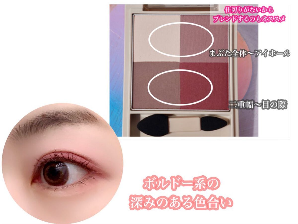 - マットな質感なのに、透け感のあるシアーな発色の4色セットアイカラーです。 美しいグラデーションで自然な立体感のある目もとへ導きます。
